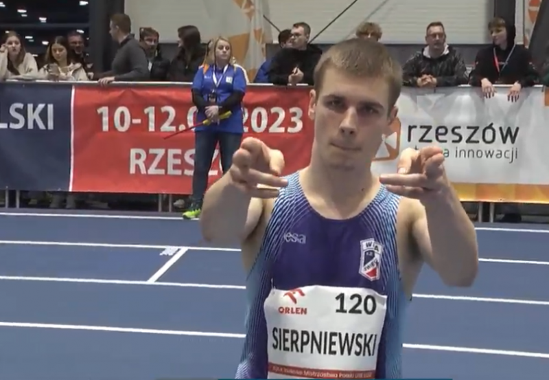 W Rzeszowie dobrze biegał Igor Sierpniewski (rocznik 2005), który pierwszy rok startuje w kategorii junior. Co prawda, nie zdobył medalu, ale dwa razy zakwalifikował się do finału „A”. Sprinter Wdy zaczął mistrzostwa od 2. miejsca w 4. serii eliminacji na 60 m – 7,03 s. Przegrał z Dawidem Grząką (Stal Ostrów Wielkopolski) – 6,95 s. Jednak uzyskany czas Igora był ósmym w eliminacjach, więc lekkoatleta pochodzący ze Zdrojewa wszedł do finału „A”. W nim zajął 7. miejsce – 7,08 s. Mistrzem Polski na 60 m juniorów został Marek Zakrzewski (AML Słupsk) – 6,70 s. Drugi był Dawid Grząka (Stal Ostrów Wlkp.) - 6,81 s, zaś trzeci Michał Gorzkowicz (Wawel Kraków) – 6,88 s.