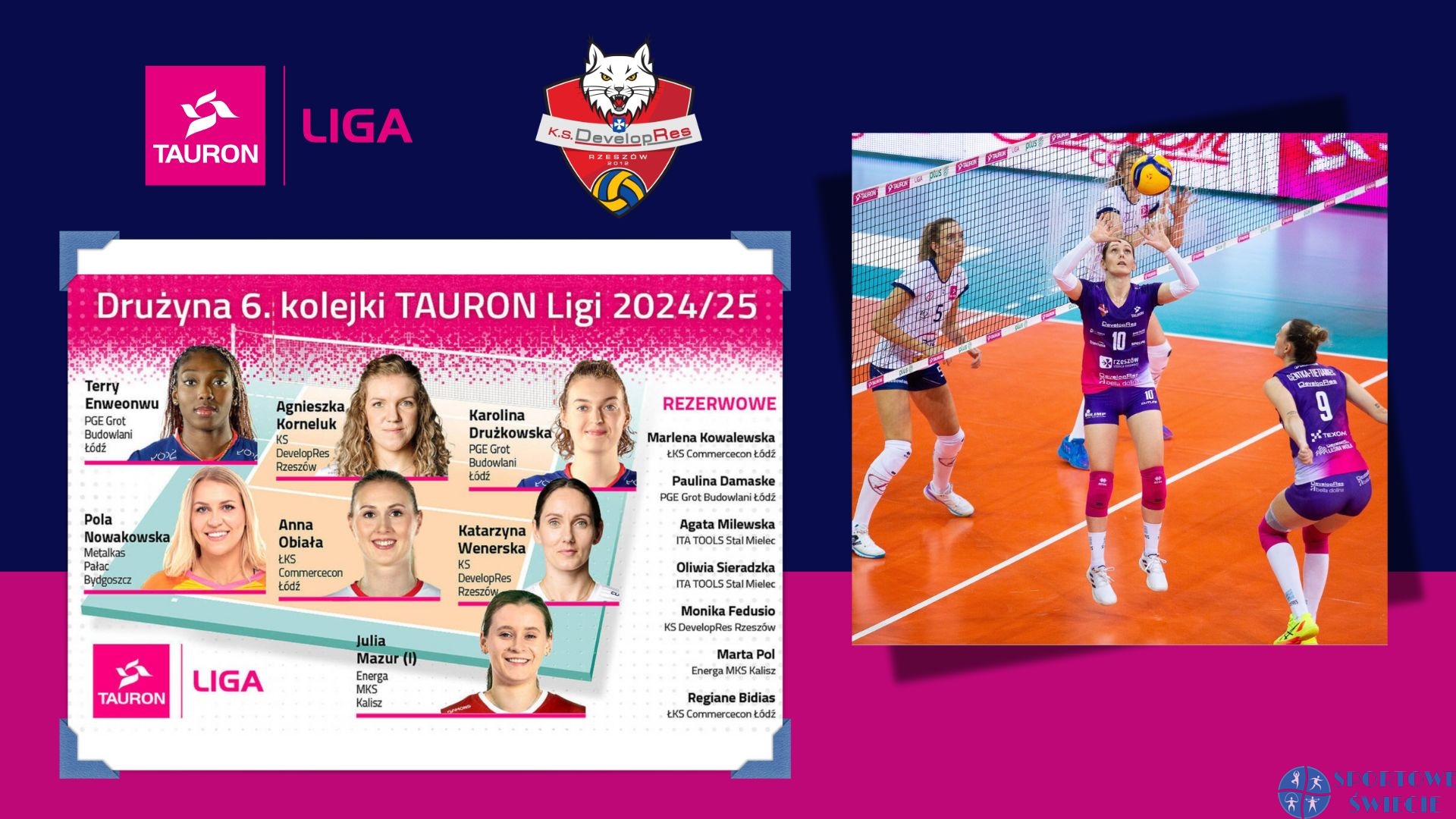 Katarzyna Wenerska (KS DevelopRes Rzeszów) została wybrana po raz czwarty w tym sezonie do „drużyny kolejki Tauron Ligi”, a po raz trzeci jako rozgrywająca nr 1. Tym razem w 6. kolejce. Na nominację zapracowała podczas jej hitu, w którym KS DevelopRes Rzeszów pokonał w Łodzi PGE Grot Budowlani 3:2 (30:28, 25:18, 14:25, 12:25, 19:17). Konfrontacja dwóch dotychczas niepokonanych drużyn stała na wysokim poziomie. W tie-breaku rzeszowianki odrobiły czteropunktową stratę oraz wybroniły dwa meczbole, a potem wykorzystały dopiero czwartą piłkę meczową. Katarzyna Wenerska zdobyła jeden punkt (blokiem) oraz w statystykach miała zapisane: 15 zagrywek (1 błąd), 1 atak (1 błąd), 47 asyst, 4 obrony i 5 wybloków.