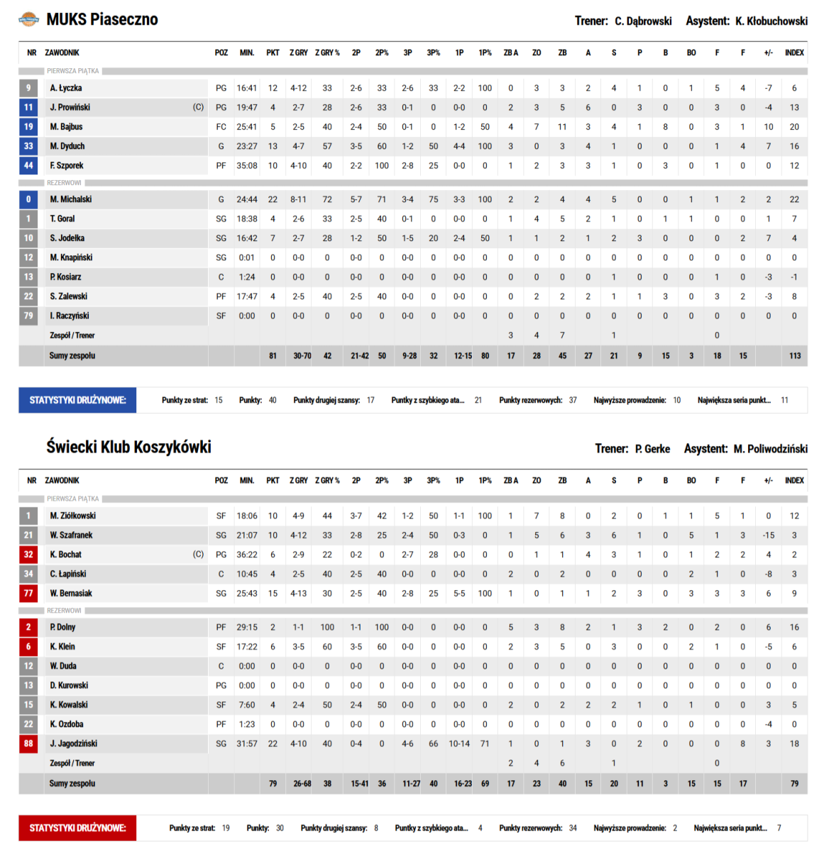 MUKS PIASECZNO – ŚKK ŚWIECIE 81:79 (18:17, 27:20, 16:25, 20:17)