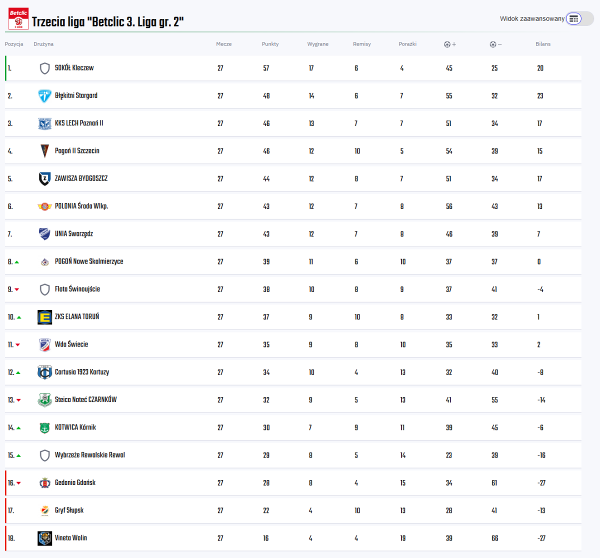 Sokół Kleczew zrobił kolejny krok do awansu do II ligi. W 27. kolejce wygrał u siebie z Gedanią Gdańsk 2:0 (0:0), a znów potknęli się Błękitni Stargard, którzy przegrali w Kartuzach z Cartusią 0:1 (0:0). Oba zespoły teraz dzieli aż 9 punktów. Takiej przewagi kleczewianie już nie powinni roztrwonić.