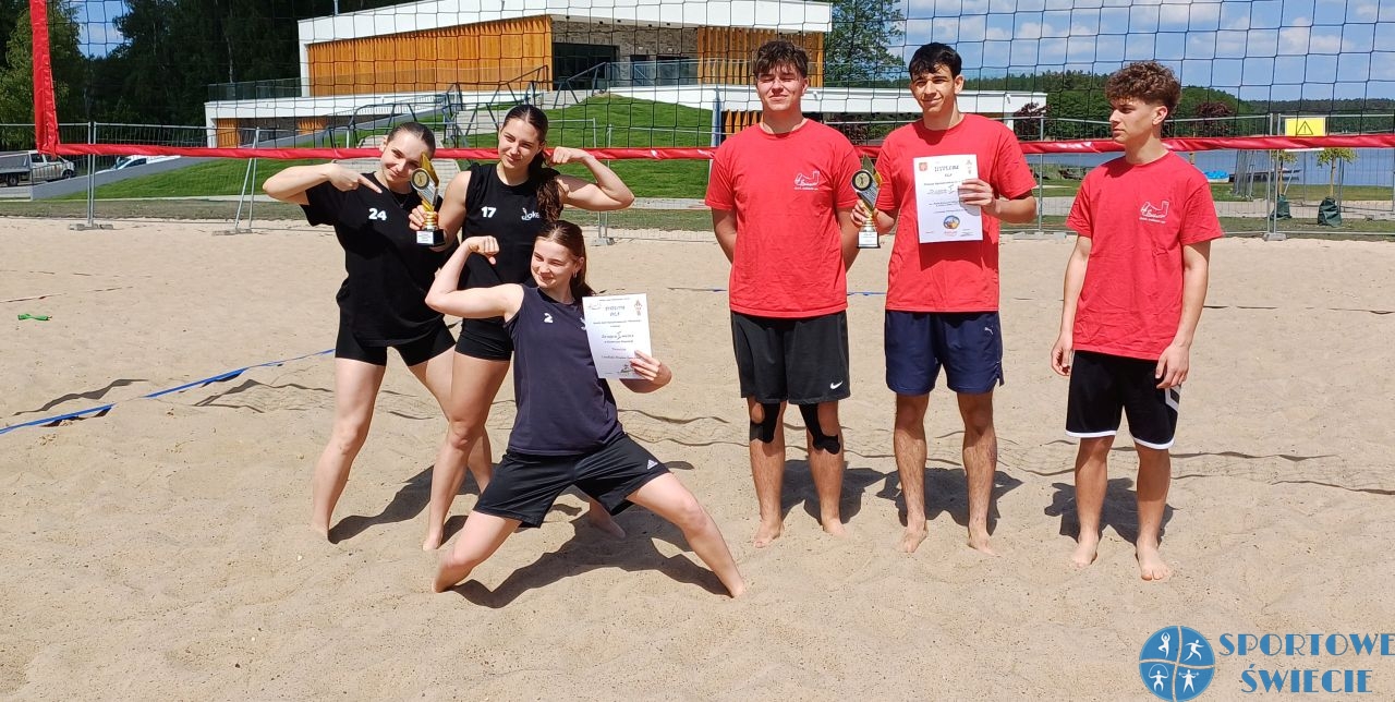 Wczoraj poznaliśmy mistrzynie i mistrzów powiatu świeckiego „Licealiady” w siatkówce plażowej. W Decznie rywalizowały trzy szkoły. U dziewcząt zgodnie z przewidywaniami rządziły Jokerki, które grały w barwach ZSOiP Świecie i I LO Świecie. Mecz między tymi drużynami zdecydował o 1. miejscu. „Biały” wygrał 2:1 (15:11, 13:15, 11:6). Stały za nim Julia Figura, Martyna Gorlicka i Natalia Chruszcz (opiekunka Monika Lubińska). Natomiast w drużynie „Czerwonego” grały Oliwia Golińska, Weronika Tomasik i Karolina Bronikowska (opiekun Mariusz Majka).