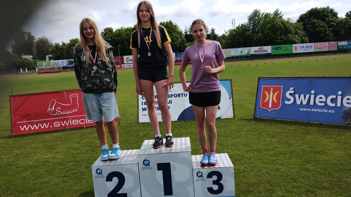 Skok wzwyż: 1. Julia Witek (SP nr 1 Świecie), 2. Aleksandra Gorczyca (SP nr 8 Świecie), 3. Łucja Szarmach (SP nr 8 Świecie).