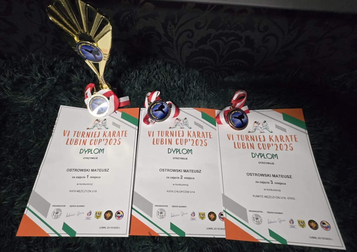 Mateusz Ostrowski z Yamabushi Bydgoszcz zdobył trzy medale podczas VI Turnieju Karate Lubin Cup. Wszystkie z innego kruszcu. Złoto wywalczył w kata U16, zaś srebro w kata U14 ustępując pola jedynie Filipowi Kolackov (Budokan Wrocław). Natomiast w kumite Mateusz Ostrowski był trzeci w kategorii wagowej do 57 kg U16 chłopców. Lepsi okazali się Piotr Purzyc (Budokan Wrocław) i Dawid Grajcki (Polonia-Torokan Biała).