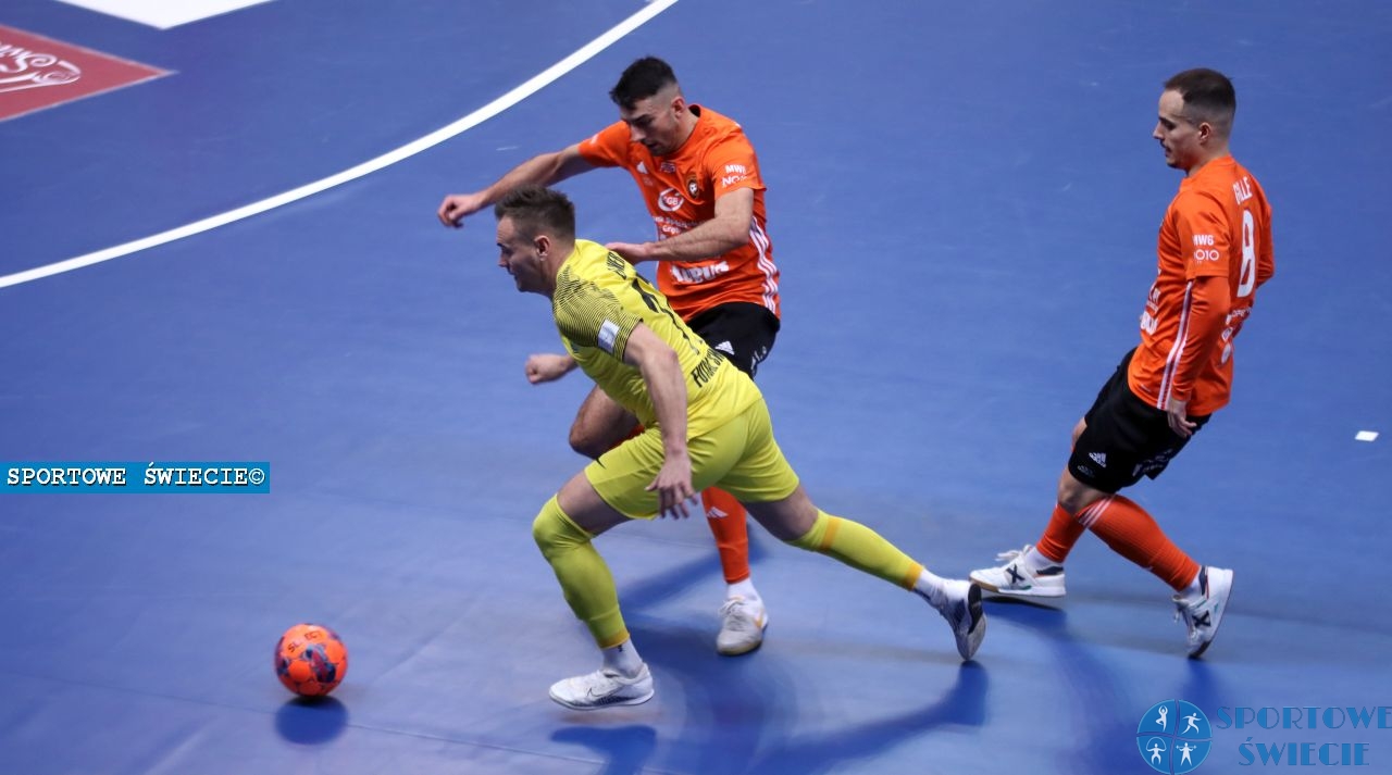Futsal Świecie zremisował z FC Reiter Toruń 3:3 (1:0) w pierwszych w historii wojewódzkich derbach Kujawsko-Pomorskiego w Fogo Futsal Ekstraklasie. W składzie beniaminka zabrakło kontuzjowanych Marcina Mrówczyńskiego i Szymona Kocieniewskiego, a także mistrza świata służb mundurowych Maksymiliana Lewandowskiego. Spotkanie przyniosło sporo emocji, nie brakowało w nim twardej walki. W 1. połowie główne role odegrali obaj bramkarze. Bartosz Piotrowski obronił 9 strzałów, zaś Kevin Kollar 11. Wśród gości największym zagrożeniem był dzisiejszy solenizant Remigiusz Spychalski, ale nie miał wyraźnie szczęścia. Piotrowskiego próbowali zaskoczyć także Maciej Jankowski, Dmytro Fedyk i … Kevin Kollar (trafił w poprzeczkę). Torunianie już w 11. min. mieli na koncie 5 fauli. Szósty popełnili w 14. min., ale do zdarzenia doszło w obrębie „7”. Kollar zdaniem sędziów nieprzepisowo zatrzymał Dawidsona Silvę. Rzut karny wykorzystał Krzysztof Elsner. W 19. min. najpierw do remisu mógł doprowadzić Krystian Kraśniewski, a po chwili na 2:0 dwukrotnie podwyższyć Matheus Inacio.