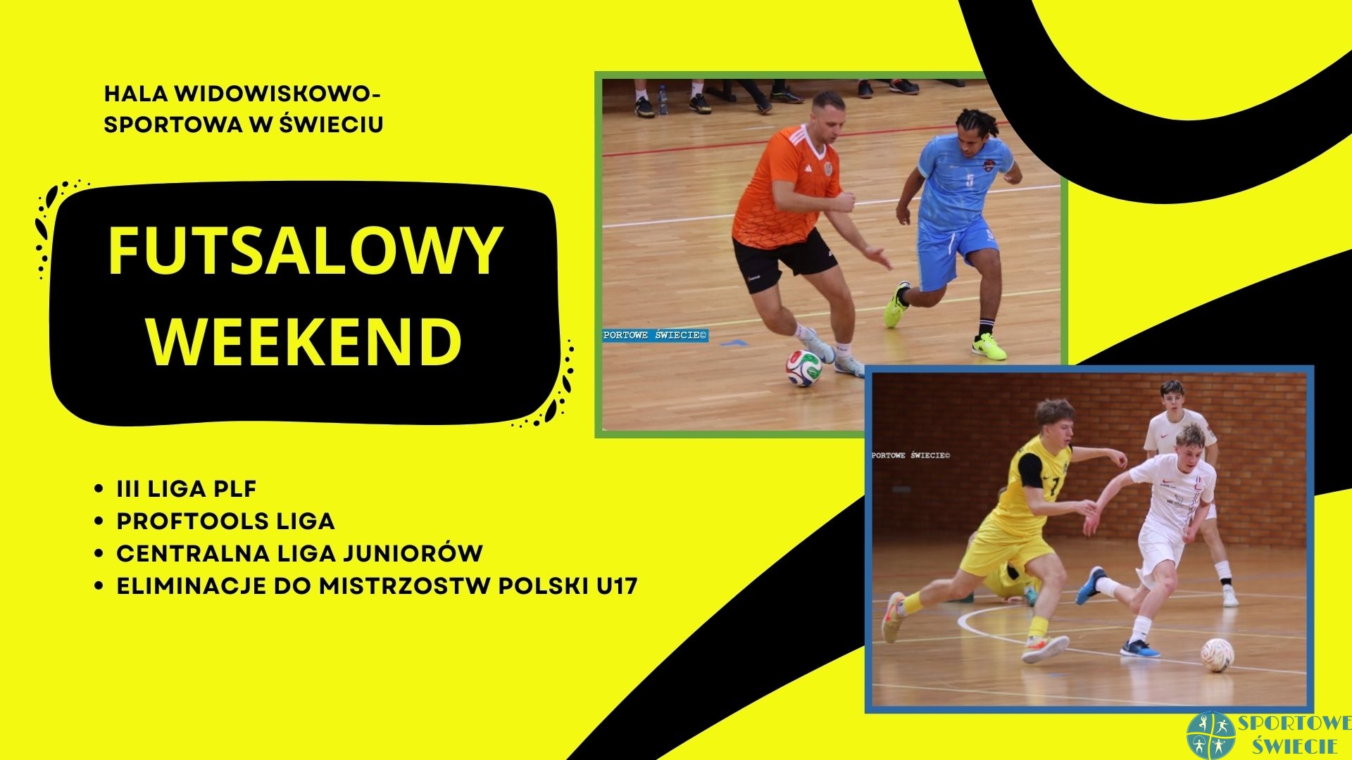 W niedzielę w hali widowiskowo-sportowej w Świeciu pogra młodzież. O godz. 14 rozpocznie się mecz 4. kolejki Centralnej Ligi Juniorów U19 pomiędzy Futsalem Świecie a Jagiellonią Białystok. Z kolei o godz. 16.30 przewidziany jest turniej grupy 4. eliminacji do Młodzieżowych Mistrzostw Polski U17 w futsalu. Zagrają Juventus Toruń, Futsal Świecie, TAF Toruń i Włókniarz Toruń. Awans uzyskają dwie najlepsze drużyny.