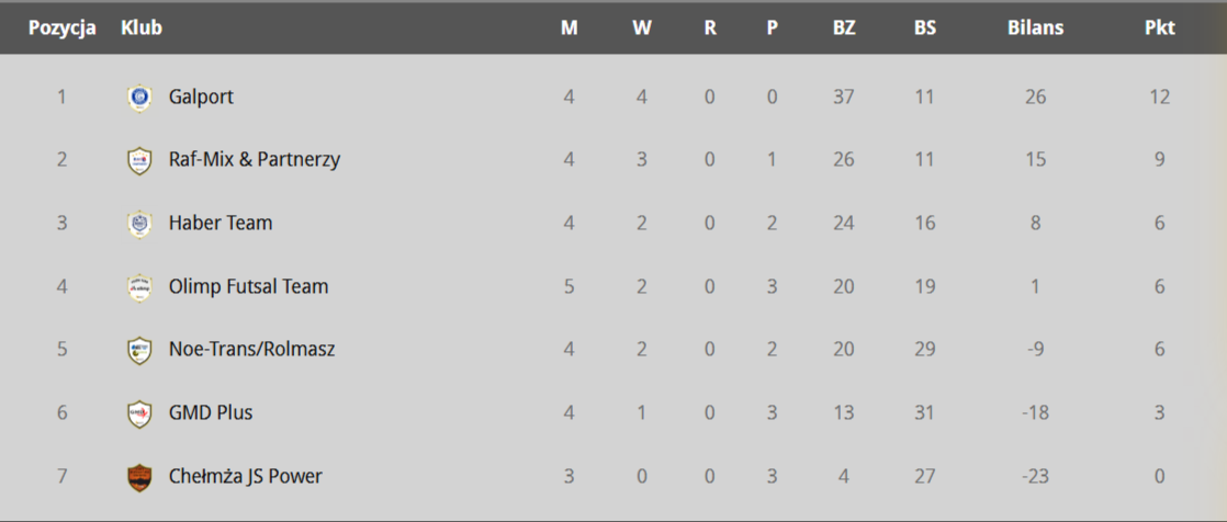 Trudne zakończenie roku miał Haber Team. W sobotę jeszcze uciekł spod topora wygrywając mecz 1. rundy Pucharu Ligi z GMD Plus w rzutach karnych 4:2. W regulaminowym czasie gry było 3:3 (3:1). Po dogrywce wynik ten utrzymał się. Piłkarze GMD Plus mogą czuć duży niedosyt, bo świetnie zagrali 2. połowę szybko odrabiając straty z pierwszej i mając kilka dobrych okazji na zwycięskie trafienie. W niedzielę Haber Team przegrał w Extralidze z Olimpem Futsal Team 4:7, co jest największą niespodzianką tego sezonu w najwyższej klasie rozgrywkowej. Usprawiedliwieniem małym jest to, że nie zagrali pierwszy bramkarz Grzegorz Okuniewski i Kacper Tarkowski. Nieobecny był też trener Jerzy Siemieniecki. W elicie kompletem punktów może pochwalić się już tylko Galport, który w hicie 5. kolejki pokonał Raf-Mix & Partnerzy 5:1 (0:1). Galport na to spotkanie ściągnął prawie cały skład, a Raf-Mix zagrał bez czterech ważnych zawodników, a na ławce miał tylko dwóch zmienników.