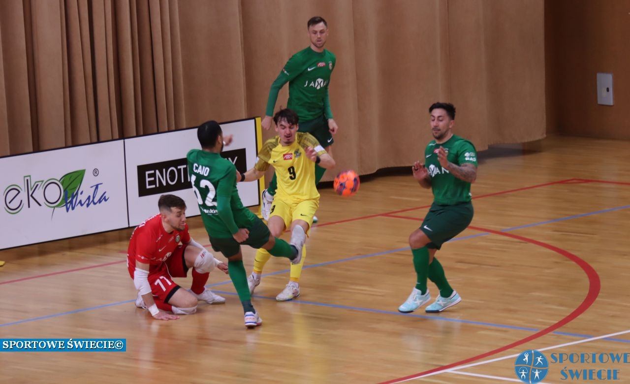 Futsal Świecie mimo porażki ze Śląskiem Wrocław 1:3 wciąż ma dwa punkty przewagi nad strefą spadkową. Zachował 12. miejsce. Z drużyn w tabeli za nim jedynie BSF ABJ Bochnia wywalczyło punkt remisując w Warszawie z Legią 5:5 (2:2). Drużyna z Małopolski przegrywała 0:2, ale później wyszła na 4:2. Wojskowi odrobili straty, lecz goście trafili jeszcze na 5:4. Jednak po 15 sekundach Legia wyrównała. Zespół z Bochni opuścił strefę spadkową spychając do niej Dremana Opole Komprachcice. Ten przegrał w Pniewach z „Czerwonymi Smokami” 2:4 (2:2). Porażki doznał również Widzew Łódź, który grał w Gliwicach z Piastem i przegrał 1:6 (0:2). W hicie kolejki Constract Lubawa zremisował z Futsalem Leszno 3:3 (3:1). „Konstruktorzy” utrzymali 3. miejsce i cztery punkty przewagi nad Leszczynianami. Po tej kolejce jest już jasne, że Futsal Świecie nie awansuje do play-off. Niżej można zobaczyć skrót meczu naszego zespołu ze Śląskiem Wrocław i komentarze zawodników oraz trenerów.