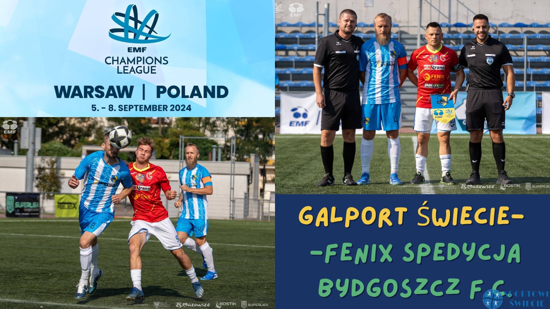 Od remisu przygodę z Ligą Mistrzów w piłkarskich szóstkach zaczął Galport Świecie-Fenix Bydgoszcz F.C. Na otwarcie turnieju w stolicy i rywalizacji w grupie „C” wicemistrz Polski SuperLiga6 zremisował z F.C. Andezit Chust 2:2 (2:1). Prowadzenie w 7. min. Galportowi dał Dmytro Chernushkin. Jego rodacy wyrównali 120 sekund potem za sprawą Andrii Kovalchuka. Tuż przed przerwą Ukraińcy wyszli na prowadzenie po strzale Serhii Lapy. Świecko-bydgoski team odpowiedział w 24. min., a gola strzelił Damian Stasikowski. Ogólnie bardziej zgrani byli piłkarze z Ukrainy, ale zespół Jarosława Grzybowskiego i Marcina Gruszczyńskiego dobrze grał w defensywie i kontratakował. Była szansa na zwycięstwo, ale remis nie krzywdzi żadnej ze stron. Tak jak wcześniej pisaliśmy, nie wszyscy zawodnicy, którzy mieli pojechać do stolicy otrzymali zgodę z klubów. Nieobecni to Krzysztof Elsner, Adam Kolmajer, Mateusz Zbiranek i Olaf Wójtowicz. W piątek do kolegów dojadą Daniel Katerla i Arkadiusz Piskorski.