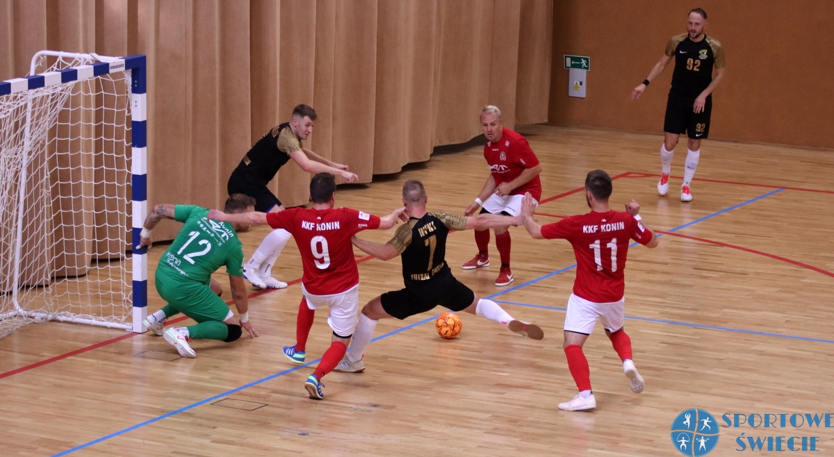 Futsal Świecie wygrał z KKF Automobile Torino Konin 10:5 (4:3). W składzie naszego zespołu zabrakło Mateusza Cymana (wyjazd) oraz Piotra Kaczkowskiego (bawił się na weselu u Dawida Szpankiewicza), za to pojawił się nieobecny w Białymstoku z powodu urazu Marcin Mrówczyński. Już w 14. sekundzie wynik strzałem z rzutu wolnego otworzył Paweł Kwiatkowski. Potem jednak kibice zgromadzeni w hali widowiskowo-sportowej przeżyli mały szok, bo goście zdobyli trzy gole z rzędu i w 10. min. było 1:3. Trener Marcin Mikołajewicz wziął czas. Po uwagach szkoleniowca świecianie zaczęli grać lepiej. Kluczowe okazały się stałe fragmenty gry i nadmiar fauli rywali. Najpierw kontaktowego gola po rzucie rożnym zdobył Kwiatkowski (asysta Olafa Wójtowicza). Potem dwa rzuty karne przedłużone bezbłędnie wykonał Adam Kolmajer. „Kolmi” mógł zaliczyć klasycznego hat-tricka, ale trzeciego rzutu karnego z 10 metrów nie udało mu się wykorzystać, bo trafił w słupek. Beniaminek mógł jeszcze w 1. części doprowadzić do remisu, bo miał 2-3 sytuacje. W jednej z nich piłkę z bramki wybił debiutujący w barwach Futsalu Marcin Mrówczyński.