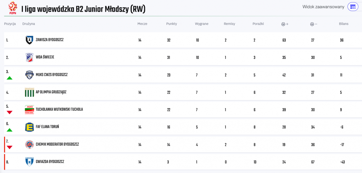 Rozgrywki juniorzy młodsi Wdy zakończyli na 2. miejscu z dorobkiem 31 pkt. Zawisza miał o jeden więcej i lepszy bilans spotkań bezpośrednich. Zatem do mistrzostwa zabrakło dwóch „oczek”. Szkoda meczu w Tucholi oraz remisu z Chemikiem Bydgoszcz (1:1) w poprzedniej kolejce, bo mimo dwóch wysokich porażek z Zawiszą można było minąć go rzutem na taśmę w tabeli. W nowym sezonie podopieczni Andrzeja Piekarczyka grać będą w I lidze juniora młodszego B1.