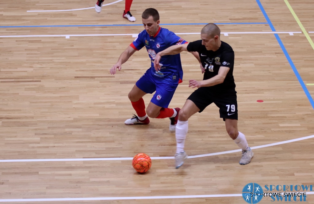 W meczu 14. kolejki I ligi PLF KS Investa PZZ Futsal Piła przegrał z Futsalem Świecie 0:4 (0:2). Na trenerskiej ławce gości zawieszonego Marcina Mikołajewicza (za czerwoną kartkę w Gdańsku) ponownie zastąpił Marcin Wanat. Pilanie walczą o utrzymanie, ale w starciu z beniaminkiem nie mieli specjalnie argumentów w ofensywie. Świecianie od początku dominowali, dochodzili do sytuacji strzeleckich, ale Mateusz Komur (3), Adam Kolmajer (2), Olaf Wójtowicz (2), Piotr Kaczkowski, Szymon Kocieniewski i Wojciech Ernest nie zdołali pokonać dobrze dysponowanego bramkarza miejscowych Jakuba Skwarka. Dopiero w 17. min., po sprytnie rozegranym rzucie rożnym przez Jakuba Hapkę, wynik strzałem z ok. 9 metrów otworzył Karol Czyszek. W 19. min. Skwarek w obrębie pola karnego sfaulował Piotra Kaczkowskiego. Sędzia podyktował rzut karny, ale oszczędził kapitana pilan nie pokazując mu drugiej w tym meczu żółtej kartki. Rzut karny pewnie wykorzystał Mateusz Komur i do przerwy przyjezdni prowadzili 2:0.