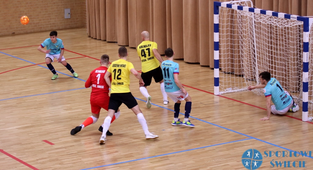 Remis Futsalu Świecie w sobotnim meczu sprawił nie tylko, że beniaminek nie wskoczył na pozycję wicelidera, ale też został wyprzedzony przez KS Gniezno. Przypomnijmy, że nasz zespół na otwarcie 17. kolejki zremisował u siebie z Futsalem Szczecin 3:3 (1:0). O meczu pisaliśmy TUTAJ. Już wtedy wiadomo było, że nie awansuje w tabeli. W sumie po tym weekendzie odrobił punkt do wicelidera z Kamienicy Królewskiej, ale strata do lidera z Gdańska wzrosła do siedmiu „oczek”. W hicie kolejki AZS UG Gdańsk pokonał We-Met Futsal Club Kamienica Królewska 4:3 (2:1). Goście z powodu problemów zdrowotnych zagrali w mocno osłabionym składzie, lecz do końca walczyli o punkt. Gdańszczanie prowadzili 2:0 i 3:1, lecz pozwolili rywalom doprowadzić w 28. min. do remisu. Jednak cztery minuty potem znów wygrywali po bramce Iwo Geerle. Jak się okazało wynik 4:3 już nie zmienił się. We-Met ma kiepskie trzy tygodnie za sobą, bo w trzech meczach w lidze ugrał ledwie punkt, a do tego odpadł z Pucharu Polski przegrywając z Futsalem Świecie. Na razie zachował pozycję wicelidera, ale nad KS Gniezno i naszą drużyną ma już tylko punkt przewagi. W niedzielę świecianie wybierają się do Sierakowic, gdzie domowe mecze gra We-Met, więc będzie szansa nr 2, by zaatakować 2. miejsce. Póki co, Futsal Świecie jest czwarty, bo lepszym bilansem wyprzedził go KS Gniezno, który teraz ograł TAF Toruń 5:4 (3:3).