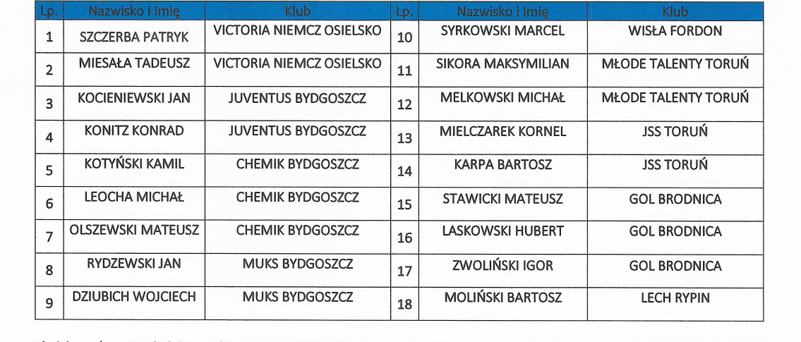 Reprezentacja K-P ZPN ‘2011 ma zaplanowane 20 czerwca gry selekcyjne. Weźmie w nich udział dwóch młodzików młodszych Wdy Świecie.