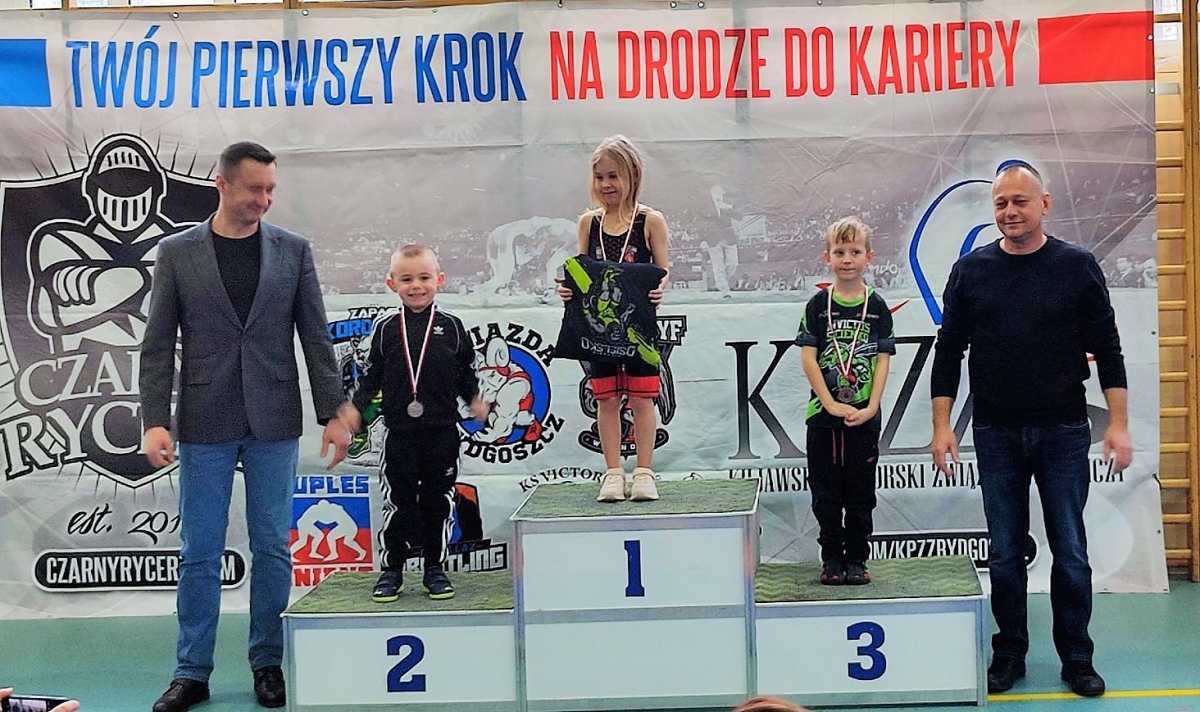 Młodzi zapaśnicy ze Świecia, Lniana i Jeżewo z dobrej strony pokazali się podczas Otwartych Mistrzostw Gminy Osielsko, które odbyły się w sobotę w Żołędowie. Do rywalizacji przystąpiło w sumie 192 zawodników z 13 klubów. Wisła Świecie wystawiła 11 zawodników, w tym jedną dziewczynkę. I to ona, Luiza Browarczyk (rocznik 2016) sięgnęła po złoty medal w wadze 20 kg dzieci pokonując dwóch chłopców z Kołobrzegu i Sicienka. Koledzy Luizy wywalczyli cztery srebrne krążki i trzy brązowe. Suples Lniano reprezentowało siedmioro wychowanków, ale walczyło tylko sześcioro. Leon Koziel (rocznik 2015) nie miał w swojej wadze przeciwników, więc zdobył złoty medal nie wychodząc na matę. W sumie dorobek podopiecznych Rajmunda Górskiego to sześć medali: 1 złoty, 5 brązowych.
