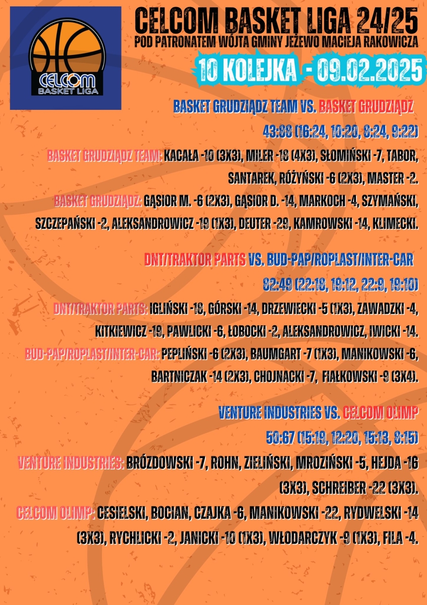 Nie udało się 26 kwietnia ani w maju, ale uda 8 czerwca. Przed nami ostatni akt szóstego sezonu Celcom Basket Ligi o Puchar Wójta Gminy Jeżewo Macieja Rakowicza. Przypomnijmy, że w kwietniu rozegrano pierwsze mecze o 1. i 3. miejsca. Rewanże zaplanowano na 26 kwietnia, jednak na ten dzień została ogłoszona żałoba narodowa ze względu na śmierć papieża Franciszka. Organizatorzy jeżewskiej ligi postanowili przełożyć finał sezonu, bo ma być on świętem basketu i radosnym dniem. W maju nie udało się znaleźć odpowiedniego terminu m.in. z powodu uroczystości komunii świętych dzieci zawodników.