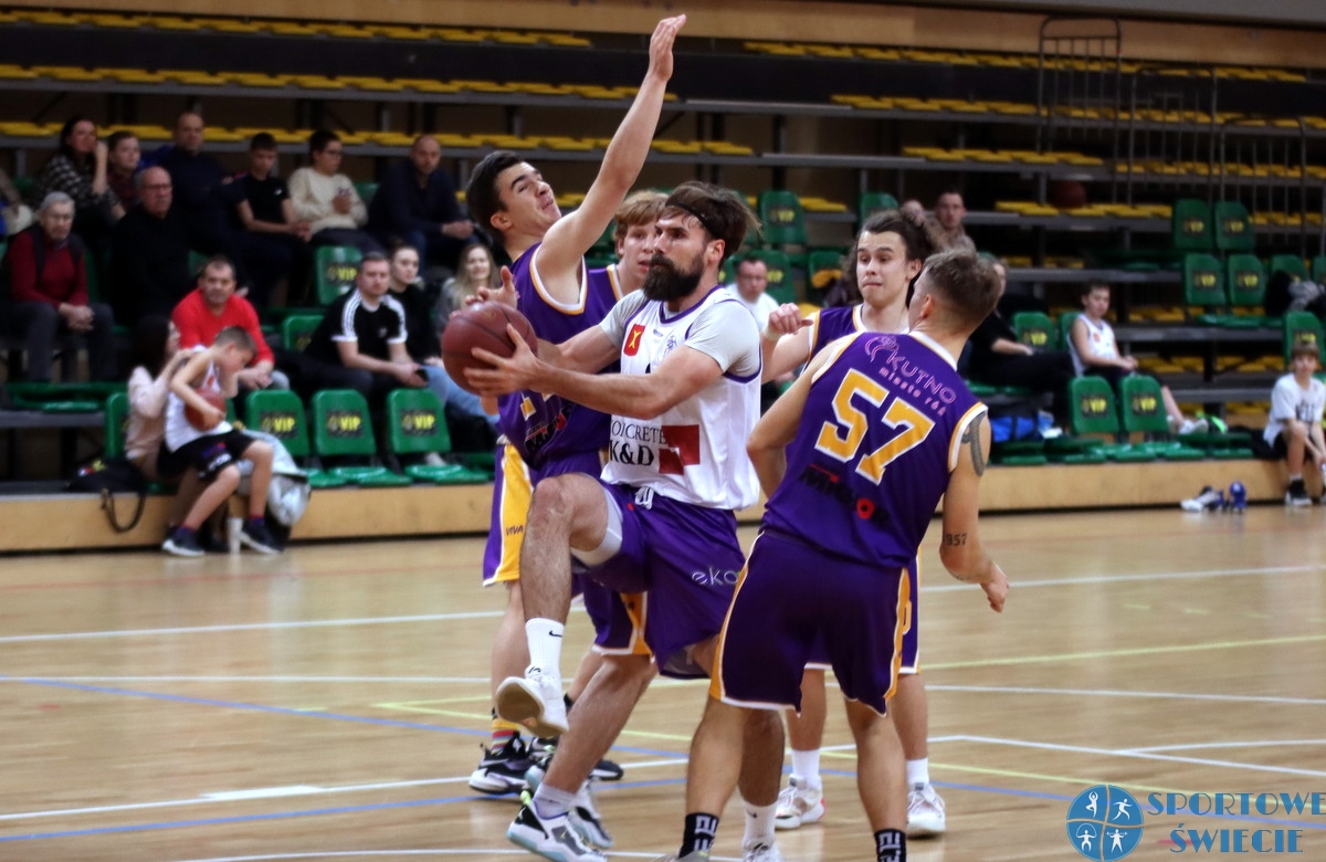 W meczu 9. kolejki III ligi ŚKK Świecie wygrał z Siódemką Kutno 108:98 (20:18, 32:24, 25:34, 31:22). Spotkanie rozpoczęło się z 15-minutowym opóźnieniem, bo gościom wydłużyła się podróż do Świecia przez trudne warunki panujące na drogach. Niespodziewanie koszykarze z Kutna zawiesili wysoko poprzeczkę, a zwłaszcza Maciej Wiercioch, który rzucił aż 54 pkt, czyli połowę dorobku całej drużyny gospodarzy. Kutnianie trafili 13 „trójek” przy sześciu naszych zawodników. Gdyby lepiej egzekwowali rzuty wolne, to może wracaliby do domów w lepszych humorach. Już pierwsze dwie kwarty pokazały, że będzie to trudny mecz. Na dodatek w 7. min. poważnej kontuzji nabawił się Norbert Jaśtak, którego karetka zabrała na badania do szpitala. Czeka go długa przerwa w grze. Świecianie długo nie mogli zbudować przewagi. Co prawda, wyszli w 8. min. na 18:11, a następnie 20:13, ale potem stracili 8 punktów z rzędu i w 11. min. Siódemka odzyskała na chwilę prowadzenie. Dopiero po kwadransie gry udane akcje Kacpra Bochata i Przemysława Dolnego oraz „osobiste” Mateusza Ziółkowskiego pozwoliły uciec na 47:35. Do przerwy ŚKK wygrywał 52:42, dzięki „trójce” Bochata równo z syreną. Jednak koszykarze z Kutna nie poddawali się. W 3. kwarcie stopniowo odrabiali straty. Po 30. min. było tylko 77:76 dla gospodarzy. Świecianie szalę wygranej przechyli dopiero w ostatniej kwarcie. Największy udział w niej miał Przemysław Dolny, który zdobył 33 pkt i królował też w walce na obu tablicach. W sumie „dwucyfrówki” zaliczyło pięciu naszych graczy. U gości wspomnianego Macieja Wierciocha (54 pkt) najmocniej wpierał Jakub Łukasiewicz – 16 pkt. Niestety, zwycięstwo zostało okupione również urazami Kacpra Freunda i Damiana Kurowskiego, ale oni powinni pauzować krócej niż Jaśtak.