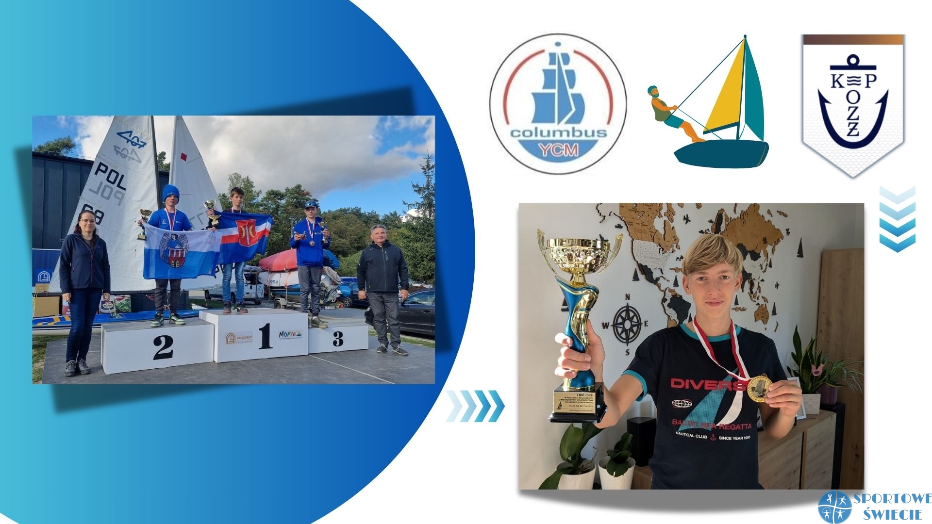 TKŻ Toruń, MKŻ Międzyszkolny Klub Żeglarski w Żninie, MLKS „Krajna” Sępólno Kraj., Kormoran Janikowo, KS „Zjednoczeni” Bydgoszcz, Klub Sportowo-Turystyczny „Elektryk” Grudziądz i YCM Columbus Świecie. Hubert Pieniążek wywalczył złoty medal w klasie Optimist. To pierwszy mistrzowski tytuł w ponad 50-letniej historii Columbusa. Po brąz i srebro sięgnęli zawodnicy TKŻ Toruń Szymon Ciechanowski i Marcel Frydrychowicz. W tej samej klasie dobre 6. miejsce zajął Jacob Han-Pembroke, zaś 10-letni Staś Bryzgalski (obaj Columbus) był 14.