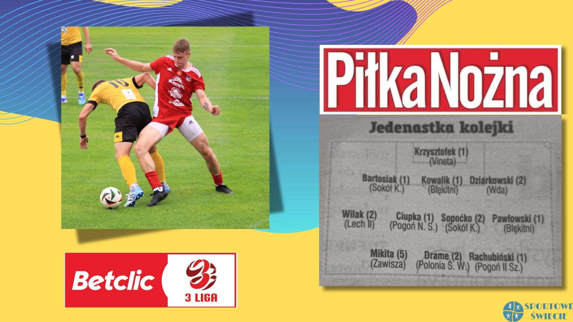 Obrońca Wdy Świecie Mikołaj Dziarkowski znalazł się w „jedenastce 15. kolejki III ligi – grupa 2.” tygodnika „Piłka Nożna”. Dla niego to drugie takie wyróżnienie przez ten prestiżowy magazyn. Defensywa beniaminka dobrze spisywała się w Swarzędzu, a zwłaszcza w ostatnich minutach, gdy świecianie grali w osłabieniu po wykluczeniu Pawła Słabego i Jaya Jaskólskiego. Poza Dziarkowskim z naszego województwa został wybrany jeszcze Patryk Mikita (Zawisza Bydgoszcz), który w sobotę w Kórniku strzelił dwa gole, w tym tego dającego remis 3:3 w 103. min. Dla Mikity to już piąta nominacja.