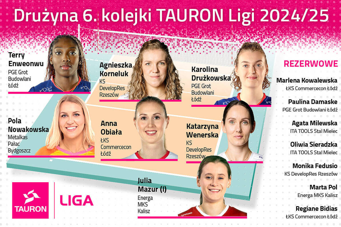 Katarzyna Wenerska (KS DevelopRes Rzeszów) została wybrana po raz czwarty w tym sezonie do „drużyny kolejki Tauron Ligi”, a po raz trzeci jako rozgrywająca nr 1. Tym razem w 6. kolejce. Na nominację zapracowała podczas jej hitu, w którym KS DevelopRes Rzeszów pokonał w Łodzi PGE Grot Budowlani 3:2 (30:28, 25:18, 14:25, 12:25, 19:17). Konfrontacja dwóch dotychczas niepokonanych drużyn stała na wysokim poziomie. W tie-breaku rzeszowianki odrobiły czteropunktową stratę oraz wybroniły dwa meczbole, a potem wykorzystały dopiero czwartą piłkę meczową. Katarzyna Wenerska zdobyła jeden punkt (blokiem) oraz w statystykach miała zapisane: 15 zagrywek (1 błąd), 1 atak (1 błąd), 47 asyst, 4 obrony i 5 wybloków.