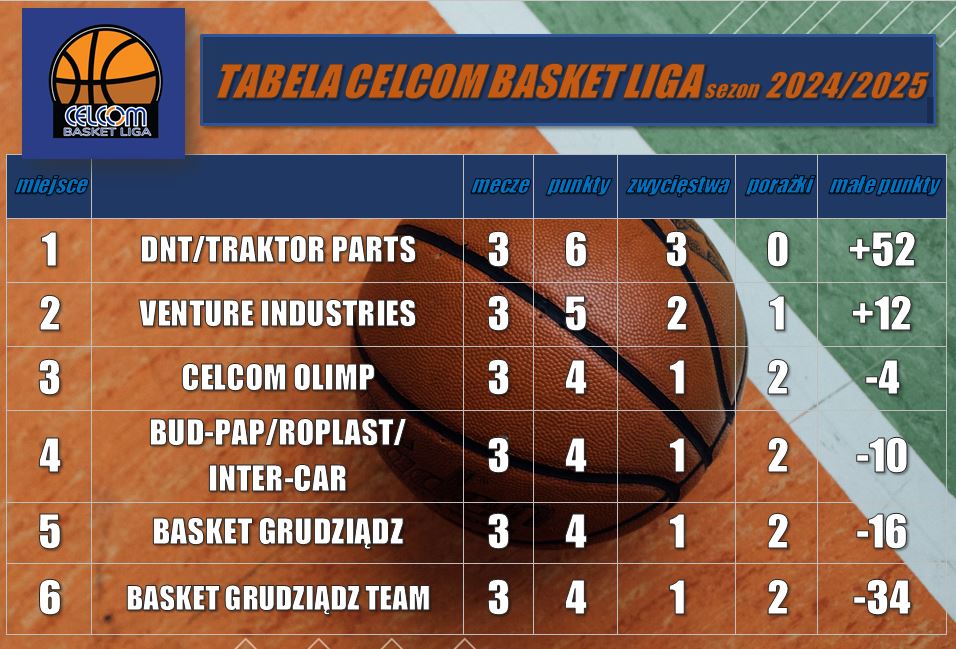 Koszykarze DNT/Traktor-Parts nadal są niepokonani w Celcom Basket Lidze. W 3. kolejce po zaciętym boju pokonali Celcom Olimp Jeżewo 59:55. Po trzech kwartach zanosiło się na porażkę lidera, bo gospodarze prowadzili 42:34. Jednak w ostatniej odsłonie obniżyli znacznie skuteczność, a „Traktorzyści” odrobili straty z nawiązką. Wygrali kwartę 25:13 i jednocześnie trzeci mecz w 6. sezonie CBL. Największy udział w victorii mieli Dariusz Igliński -17 pkt, Dawid Górski – 17 i Karol Drzewiecki – 14.