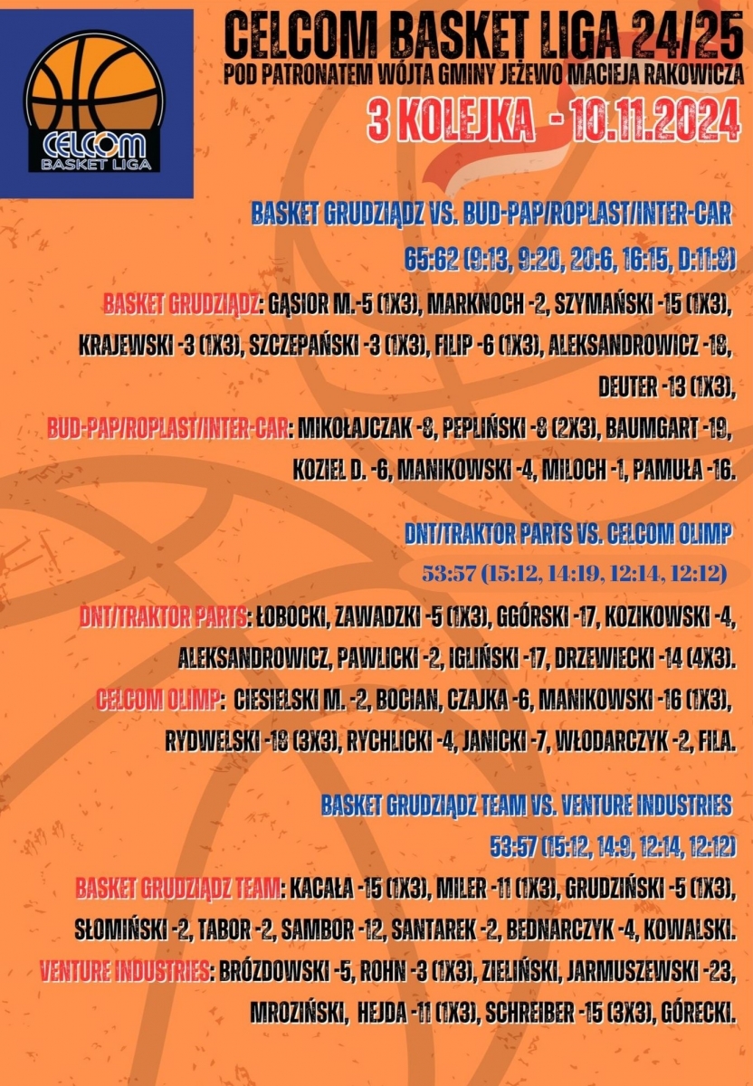 W Celcom Basket Lidze w Jeżewie w minioną niedzielę rozegrano 3. kolejkę spotkań.