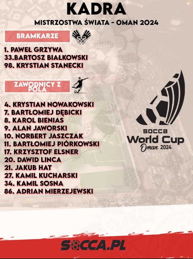 Od 29 listopada do 7 grudnia w Omanie odbędzie się Socca World Cup ‘2024, czyli piąty w historii mundial w piłkarskich szóstkach. Zagra w nim 40 narodowych drużyn. Reprezentacja Polski w 2018 i 2019 roku sięgała po wicemistrzostwo świata, zaś w 2022 po brąz. We wszystkich medalach miał udział Krzysztof Elsner, który jest kadrowiczem legendą. Gra w reprezentacji 9 lat. Zadebiutował 22 września 2015 roku w meczu z Francją. W sumie zaliczył 50 występów w barwach narodowych, strzelił 9 bramek i miał niezliczoną ilość asyst. Klubowo jest czterokrotnym mistrzem Polski, trzykrotnym zdobywcą Pucharu Polski w barwach Dynamiki Herring Toruń i Bartistu Toruń.