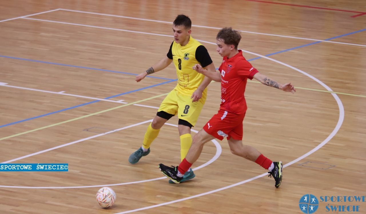 Początek środowego meczu był spokojny, bez klarownych okazji z obu stron. W 7. min. błąd pod własną bramką popełnił Krzysztof Gronowski i omal nie skończyło się to stratą gola. Na szczęście strzał Mikołaja Siemieniuka obronił Łukasz Cichowski. Jednak bramkarz Futsalu przy interwencji nabawił się urazu i musiał opuścić boisko. Między słupkami stanął Kacper Groszewski, który przypomnijmy, na trawie gra w przednich formacjach. W 9. min. goście objęli prowadzenie, gdy po dośrodkowaniu z prawej strony Damiana Danilewicza pechowo interweniował Bartosz Kotras zaliczając samobójcze trafienie. Świecianie odpowiedzieli po 120 sekundach, gdy kontrę Krzysztofa Skomry zakończył celnym strzałem Aleksander Witek. Niestety, potem w dwie minuty stracili trzy gole. W 12. min. po rzucie rożnym ładnym uderzeniem z ostrego kąta popisał się Damian Danilewicz. Minutę później po kornerze strzelał Kamil Boroda, a przed bramką lot piłki zmienił Dawid Bolesta. Nie minęło 40 sekund, a ponownie Kacper Groszewski musiał wyciągać futsalówkę z sieci. Po strzale Wiktora Gęgotka bramkarz Futsalu sparował piłkę na słupek, ale z dobitką zdążył Damian Mielesza. Do przerwy oba zespoły miały jeszcze po dwie okazje, ale wynik nie zmienił się.