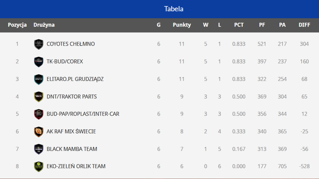Coyotes Chełmno po raz pierwszy przegrał w Świeciu. W 6. kolejce Anbud Basket Ligi zwycięski marsz lidera przerwał inny debiutant w ŚALK Elitaro.pl Grudziądz. Po bardzo zaciętej konfrontacji, gdzie główną rolę odgrywała twarda defensywa, grudziądzanie wygrali 55:52. Oba zespoły doskonale znają się z Chełmińskiej Ligi Koszykówki. „Kojoty” po trzech kwartach prowadziły 45:38, ale w ostatniej odsłonie zagrały słabo w ataku przegrywając ją 7:17. W pierwszych trzech jej minutach oraz trzech ostatnich chełmnianie nie oddali żadnego celnego rzutu. Elitaro.pl do victorii poprowadził zawodnik ŚKK Świecie Karol Klein, który rzucił 26 pkt.