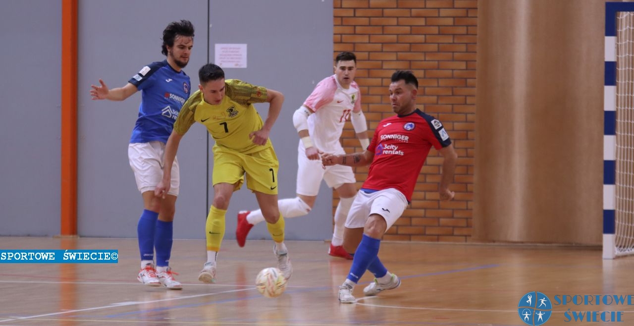 W meczu 15. kolejki I ligi PLF Futsal Świecie rozgromił Dragona Bojano 10:2 (5:1). W ekipie gospodarzy zabrakło pauzującego za kartki Marcina Mrówczyńskiego, którego udanie w pierwszej „czwórce” zastąpił Karol Czyszek. „Smok” w rewanżach na wyjazdach zdobył cztery punkty, więc wydawało się, że wyżej zawiesi poprzeczkę liderowi. Do siódmej minuty utrzymywał bezbramkowy remis mając jedną świetną sytuację w 3. min., której nie wykorzystał Bartosz Pieńczykowski. Świecianie zanim otworzyli wynik zmarnowali 3-4 dobre sytuacje. W 7. min. po indywidualnej akcji Piotr Kaczkowski dał prowadzenie Panterom. Trzy minuty potem goście popełnili błąd przy zmianie „bramkarza lotnego” na nominalnego. Nasi piłkarze szybko wykonali rzut rożny i Maksymilian Lewandowski podwyższył na 2:0. Później przez siedem minut wynik pozostał nieruszony. W 16. min. po znakomitym wyrzucie piłki przez Bartosza Piotrowskiego Mateusz Cyman sprytnie przelobował golkipera Dragona i drużyny już dzieliły trzy gole. Miejscowi poszli za ciosem. W 17. i 19. min. dwukrotnie do siatki trafił Szymon Kocieniewski. Tuż przed przerwą Piotrowski sfaulował w obrębie „7” Mikołaja Krefta i sędzia podyktował rzut karny, którego wykorzystał Dominik Depta.