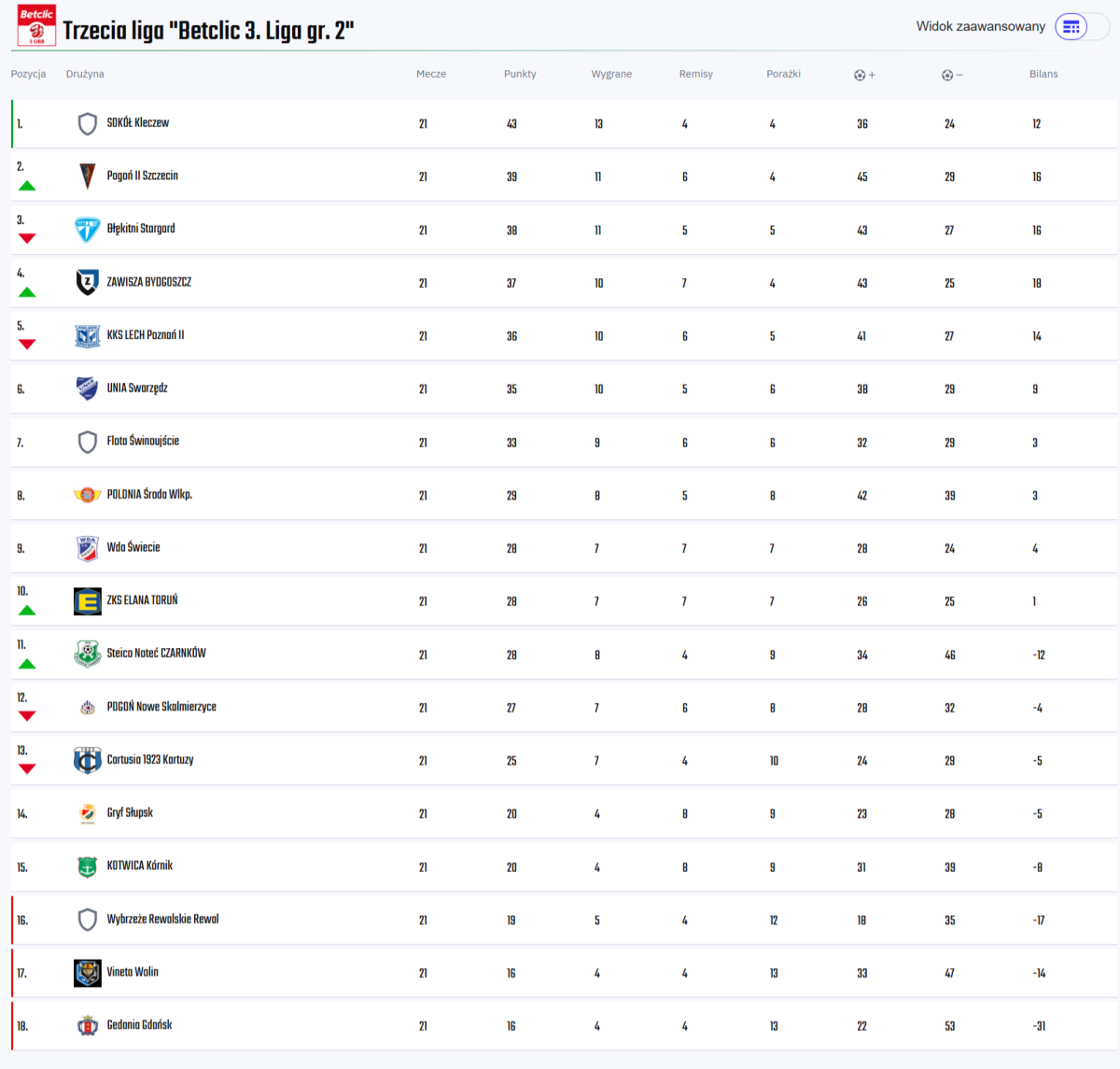 Po 21. kolejce w III lidze samodzielnym liderem pozostał Sokół Kleczew, a na drugie miejsce wysunęły się rezerwy Pogoni Szczecin.