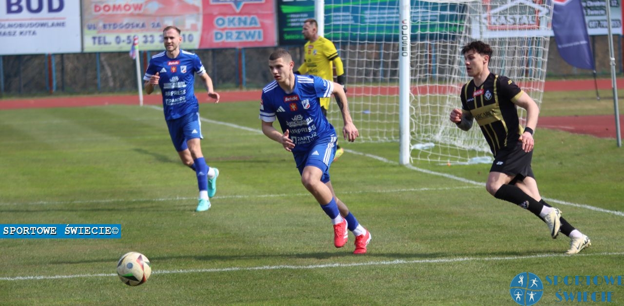 Trzecioligowi piłkarze ze Świecia odnieśli w sobotę pierwsze zwycięstwo w rundzie rewanżowej. Wda w ramach 23. kolejki Betclic 3. Liga zwyciężyła Pogoń Nowe Skalmierzyce 2:1 (0:0). Trener Krzysztof Urtnowski dokonał dwóch korekt w składzie. Po raz pierwszy w tym roku w wyjściowej „11” pojawił się Jakub Ratkowski. Do składu wrócił nieobecny w Gdańsku Mikołaj Dziarkowski. To nie był łatwy mecz. Beniaminek nie zagrał efektownie, ale efektywnie. W 2. części potrafił wykorzystać swoje dwie szanse po błędach bramkarza rywali. W 69. min. wynik otworzył Oskar Januszewski. Siedem minut później w zamieszaniu pod bramką Pogoni dobrze odnalazł się Mikołaj Dziarkowski i było 2:0. W 83. min. błąd defensywy gospodarzy wykorzystał Patryk Palat. Przyjezdni jeszcze próbowali doprowadzić do remisu, ale bez powodzenia. Trzy punkty zostały w Świeciu.