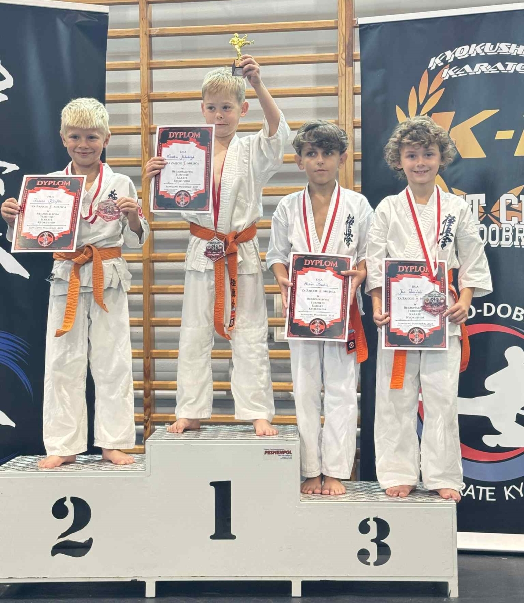 W sobotę w Kowalewie Pomorskim odbył się Regionalny Turniej Karate. Wzięło w nim udział ponad 100 zawodników z klubów z naszego województwa. Świetnie spisała się siedmioosobowa ekipa Szkoły Kyokushin Karate w Świeciu. Jej dorobek to siedem medali, w tym trzy złote i cztery brązowe. W swoich kategoriach triumfowali: Nadia Rutkowska (kumite U14 dziewcząt, +60 kg), Martyna Maliszewska (kumite U12 dziewcząt, −50 kg) i Mark Demieniuk (kumite U12 chłopców, −40 kg). Brązowe krążki zajmując 3. miejsca wywalczyli: Leon Szymkiewicz (kumite U12 chłopców, −50 kg), Olaf Szymkiewicz (kumite U10 chłopców, −47 kg), Jan Rosiński (kumite U8 chłopców, −25 kg) i Nina Maciejewska (kumite U8 dziewcząt, −30 kg). Zawodnikom towarzyszył sensei Jakub Kunkel.