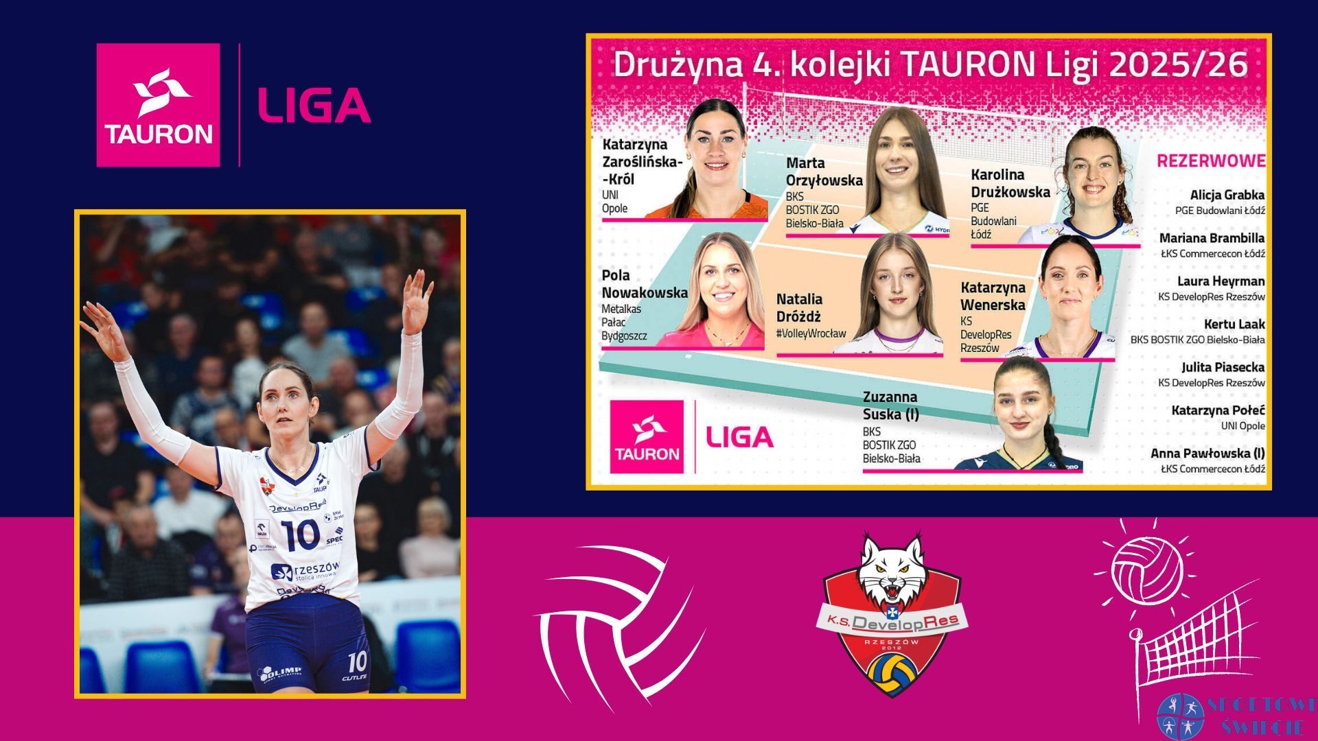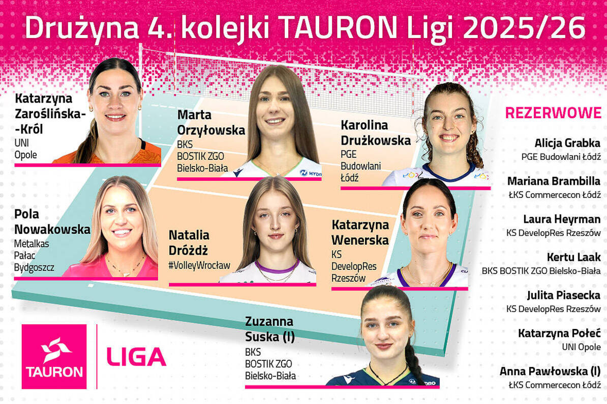 Tytuł MVP meczu na szczycie tabeli był doskonałą kartą przetargową w kontekście wyboru do „drużyny 4. kolejki” Tauron Ligi. Redakcja oficjalnego portalu nie miała wyjścia, jak ogłosić Katarzynę Wenerską (KS DevelopRes Rzeszów) rozgrywającą nr 1 tej serii gier. Przypomnijmy, że w piątek wychowanka Jokera Świecie po raz pierwszy została wybrana MVP meczu w tym sezonie, a działo się to w wygranym spotkaniu Rysic z Moya Radomka Radom 3:0 (25:16, 25:15, 25:21). Katarzyna Wenerska zdobyła 4 pkt. Dla niej to druga nominacja do „drużyny kolejki” w obecnych rozgrywkach. W 1. kolejce była rezerwową rozgrywającą. Teraz jako „2” na rozegraniu portal www.tauronliga.pl wskazał Alicję Grabkę (PGE Budowlani Łódź), a więc na tej pozycji mieliśmy reprezentacyjny duet z tegorocznej Siatkarskiej Ligi Narodów Kobiet.