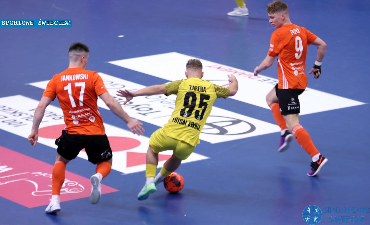 Transmisja w TVP Sport, pełne trybuny, 6 goli i emocje do samego końca - takie były historyczne derby województwa kujawsko-pomorskiego w Fogo Futsal Ekstraklasie. Futsal Świecie zremisował z FC Reiter Toruń 3:3 (1:0). Przypomnijmy, że po dwóch rzutach karnych wykorzystanych przez Krzysztofa Elsnera beniaminek prowadził 2:0, ale potem torunianie nie tylko odrobili straty, ale też wyszli na 3:2. Remis uratował nam Matheus Inacio. Wszystko można jeszcze raz obejrzeć w przygotowanym skrócie, choć tym razem bez komentarza. Ma to związek z tym, że była transmisja telewizyjna.