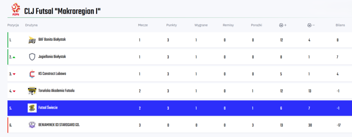 W niedzielę o godz. 14 Futsal Świecie podejmie Jagiellonię Białystok (hala widowiskowo-sportowa w Świeciu).