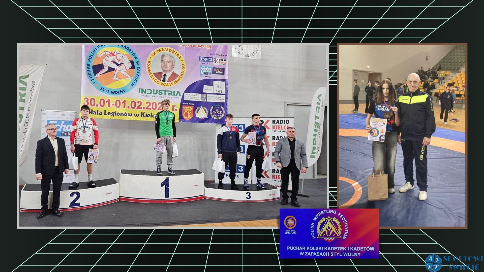 Jakub Kiełpiński (Wisła Świecie) i Małgorzata Bonna (Suples Lniano) dobrze zaprezentowali się podczas I Pucharu Polski Kadetów i Kadetek w zapasach, który odbył się w Kielcach. Świecianin sięgnął po srebrny medal w wadze 80 kg. W niej startowało aż 32 kadetów. Kuba wygrał pierwsze cztery walki. W finale musiał uznać wyższość Franciszka Dubaja (WKS Śląsk Milicz) przegrywając na punkty. Trenerami zawodnika są ojciec i brat, czyli Rafał Kiełpiński i Kacper Kiełpiński.