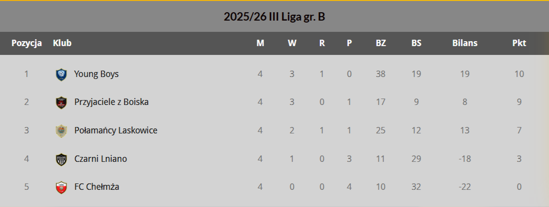 WYNIKI III LIGI „B”: