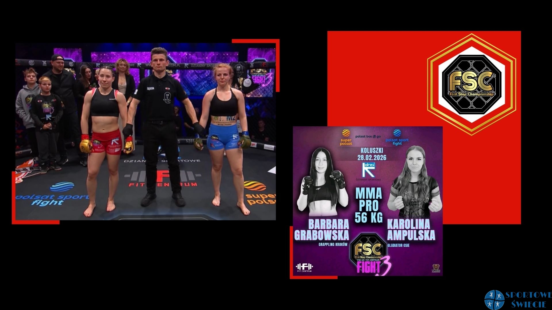 Pięściarka Wdy Świecie Karolina Ampulska zadebiutowała w MMA. Wszystko miało miejsce podczas First Step Championship 12 w Koluszkach. Ampulska znalazła się w ostatniej chwili wśród uczestników gali, bo z pojedynku w wadze 52 kg MMA wypadła z powodu kontuzji Brazylijka Eduarda Sandos. Rywalką wojowniczki z Laskowic była Barbara Grabowska z Grappling Kraków, która miała już za sobą jedną przegraną walkę w MMA. Pojedynek nie przebiegł po myśli zawodniczki z gminy Jeżewo. Szybko dała się sprowadzić do parteru. Próbowała się uwolnić, ale bezskutecznie. Grabowska zasypywała ją ciosami w głowę, a na koniec zapięła ciasne duszenie zza pleców, zmuszając Ampulską do odklepania.