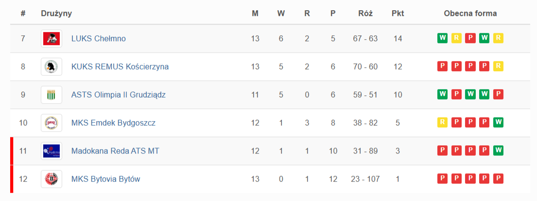 Grupa spadkowa – 1. kolejka: MKS Bytovia Bytów - LUKS Chełmno 2:8. Mecze Remus Kościerzyna - MKS Emdek Bydgoszcz, Madokana Reda ATS MT - ASTS Olimpia II Grudziądz zostały przełożone na 31 marca.