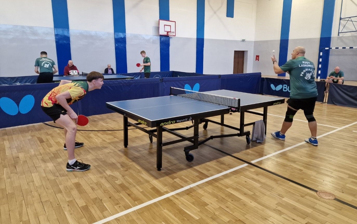 W 2. rundzie w II lidze mężczyzn w tenisie stołowym rywalizacja jest w grupach awansowej i spadkowej. Drugoligowiec z gminy Jeżewo pierwszy raz w historii walczy o medal. Prosiaczek Kusy Laskowice w zaległym meczu 1. kolejki wygrał z Balta KS AZS AWFiS III Gdańsk 6:4. To był pojedynek sąsiadów w tabeli, a stawką 3. miejsce. Laskowiczanie wygrali pierwsze dwa single, a po drugiej serii prowadzili 3:1. Po deblach utrzymali przewagę (4:2), a po trzeciej serii gier pojedynczych mieli zapewniony przynajmniej remis (5:3). W ostatnich pojedynkach na stole nr 2 Adam Wasilewski przegrał z Maciejem Kucharskim 1:3, ale wygraną Kusego na „jedynce” przypieczętował Mateusz Ufnal ogrywając Jakuba Krzyżanowskiego 3:1.