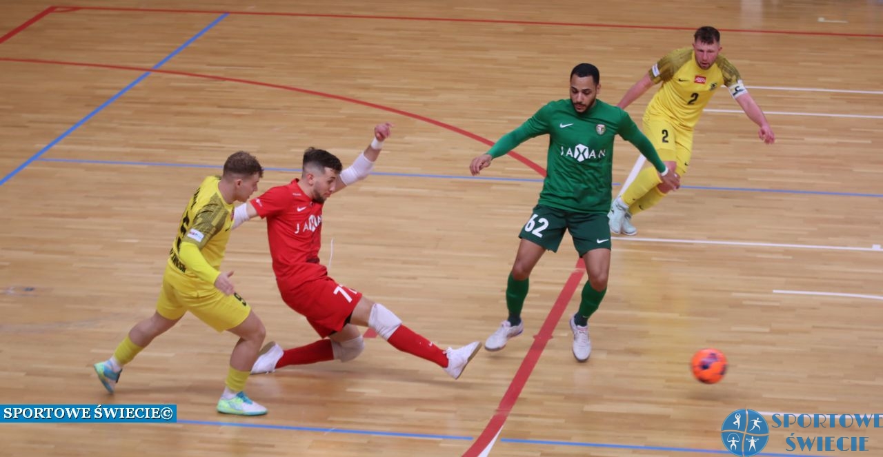 Futsal Świecie uległ w 27. kolejce Fogo Futsal Ekstraklasy Śląskowi Wrocław 1:3 (1:0). To był ważny mecz dla obu ekip, zwycięstwo mocno przybliżało do utrzymania. Zaczęło się znakomicie dla nas, bo już pierwsza akcja przyniosła gola. Po zagraniu Piotra Kaczkowskiego strzelił go Luiz Gustavo Przybyszeweski, który wygrał pojedynek sam na sam z Kamilem Izbiańskim. Na zegarze kończyła się 9 sekunda. Golkiper Śląska przepuścił pierwszy strzał, ale później spisywał się znakomicie. W 1. części popisał się udanymi paradami po strzałach Karola Czyszka (z głowy), Marcina Mrówczyńskiego i Piotra Kaczkowskiego. Sporo pracy do przerwy miał też Bartosz Piotrowski, który spisywał się bezbłędnie. Obronił 9 strzałów. Jego umiejętności sprawdzili m.in. Caio Dos Santos i Jose Joselito Fernandez. Najlepszą okazję miał w 10. min. Jonatan De Agostini, który z bliska trafił w klatę golkipera Panter.