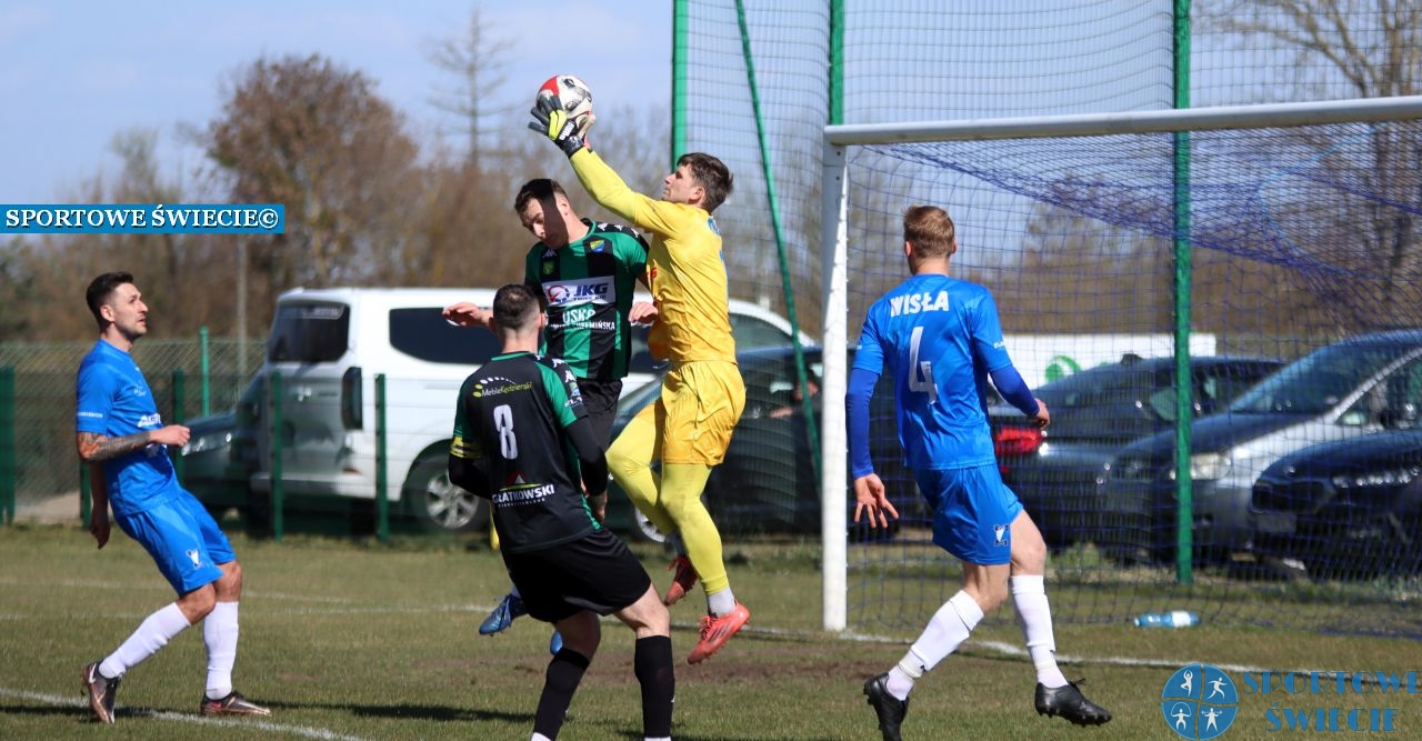 Wisła Gruczno zremisowała z LKS Dąbrowa Chełmińska 0:0 w meczu 19. kolejki „okręgówki”. To pierwsze punkty stracone przez beniaminka z gminy Świecie w rundzie wiosennej. Być może z rytmu wybiła go przymusowa pauza w zeszłym sezonie (przełożony mecz z Gryfem Sicienko). Swoje zrobiły też warunki do gry, czyli stan boiska i wiatr. Wczoraj zabrakło przede wszystkim skuteczności, bo okazje były. W 1. części Olaf Wójtowicz miał trzy, jednak żadnej nie zamienił na gola. W najlepszej w 13. minucie przestrzelił. W 2. połowie miał on także szansę do rehabilitacji, lecz także nie zdołał umieścić piłki w bramce rywali. Wiślacy stworzyli jeszcze 2-3 dobre akcje, które mogły im przynieść zwycięskie trafienie, choć nie były one czysto stuprocentowe. Goście nie ograniczali się tylko do obrony. Szukali swoich szans w kontrach i stałych fragmentach gry. Do przerwy mieli dwie sytuacje, z których mogli wyjść na prowadzenie. W jednej sędziowie odgwizdali spalonego, a w drugiej obrońcy Wisły zdołali zablokować strzał w ostatniej chwili i wywalczyć rzut wolny za zagranie reką. W 2. części piłkarze z Dąbrowy Chełmińskiej także mogli zadać gospodarzom decydujący cios. W jednej sytuacji piłka wylądowała na poprzeczce.