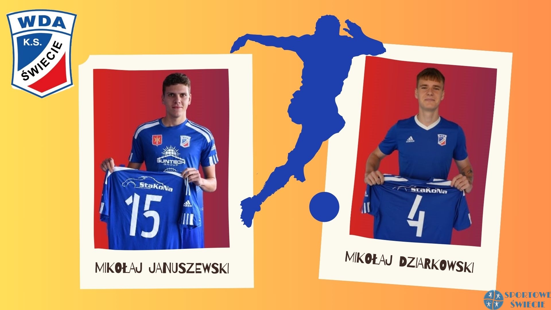 Beniaminek Betclic III liga ze Świecia ogłosił kolejne dwa letnie transfery. Nowymi piłkarzami Wdy zostali obrońca Mikołaj Dziarkowski i pomocnik Mikołaj Januszewski. 19-letni Dziarkowski jest wychowankiem UKS Lipno, ale przez większość kariery związany był z MUKS CWZS Bydgoszcz. W tym klubie przechodził kolejne szczeble od trampkarza aż po A klasę. Grał w drużynie seniorów, która najpierw awansowała z B do A klasy (pod wodzą Tomasza Rogóża), a następnie w zeszłym sezonie do „okręgówki”. W serie „B” rozegrał 19 meczów strzelając 11 goli, zaś w zeszłym sezonie w A klasie 22 spotkania (4 gole).
