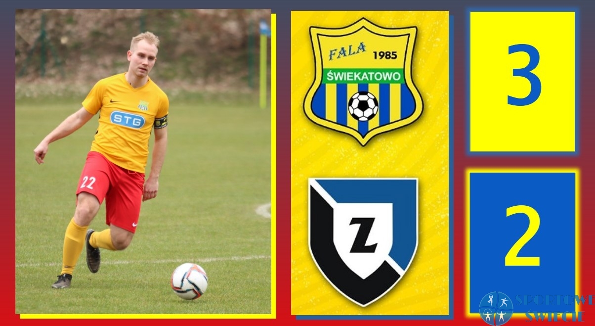 W ramach 30. kolejki A klasy Fala Świekatowo pokonała Zawiszę II Bydgoszcz 3:2 (0:0). Mecz rozegrano awansem w środowe popołudnie. U gospodarzy zabrakło Roberta Czartowskiego (kartki) i kontuzjowanego Dawida Chojnackiego. Gości poprowadził nowy trener Andrii Kononenko, który 1 czerwca zastąpił Pawła Kawalca (zakończył pracę w klubie). Spotkanie przyniosło sporo emocji. - W 1. częściej byliśmy równorzędnym rywalem dla wicelidera – uważa trener Fali Patryk Zarosa. - Nie przestraszyliśmy się go. My mieliśmy jedną dogodną sytuację, bydgoszczanie jedną. Na początku 2. połowy straciliśmy gola, jednak w 61. min. po fajnej akcji wyrównaliśmy. Michał Szynderłacki przelobował bramkarza strzałem z ponad 35 metrów. W 78. min. rezerwy Zawiszy znów wyszły na prowadzenie. Gola straciliśmy za łatwo. Jednak dwa stałe fragmenty gry wykonane przez Michała Kwasigrocha i strzały Kajetana Żygadły dały nam na koniec sezonu zwycięstwo. Remis byłby wynikiem najsprawiedliwszym, ale to do nas uśmiechnęło się szczęście w ostatnich minutach i w dobrych humorach zakończyliśmy te rozgrywki.