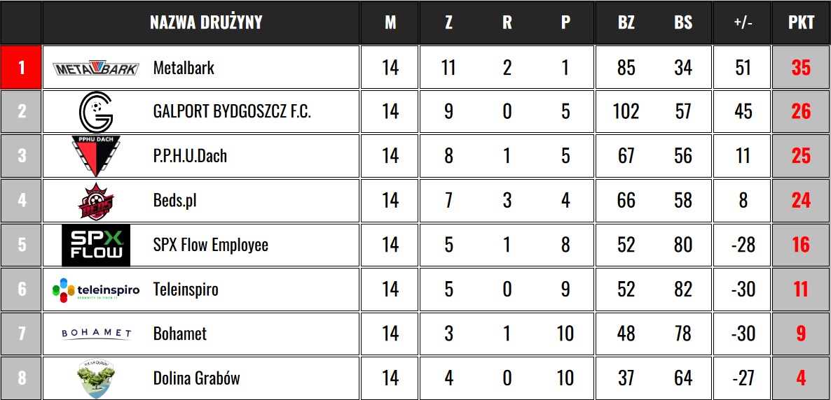 W ligach bydgoskich nie ma też takich limitów zawodników z wyższych lig, jak w FSL w Świeciu. Jarosław Grzybowski zmontował mocny skład, w którym są piłkarze m.in. z IV ligi: Daniel Semrau, Olaf Wójtowicz, Radosław Mik, Marcin Wanat, Bartosz Piotrowski, Maciej Góra, Dawid Duma, Marcin Gaca, Mykyta Khadzhynov, Patryk Jarantowicz.
