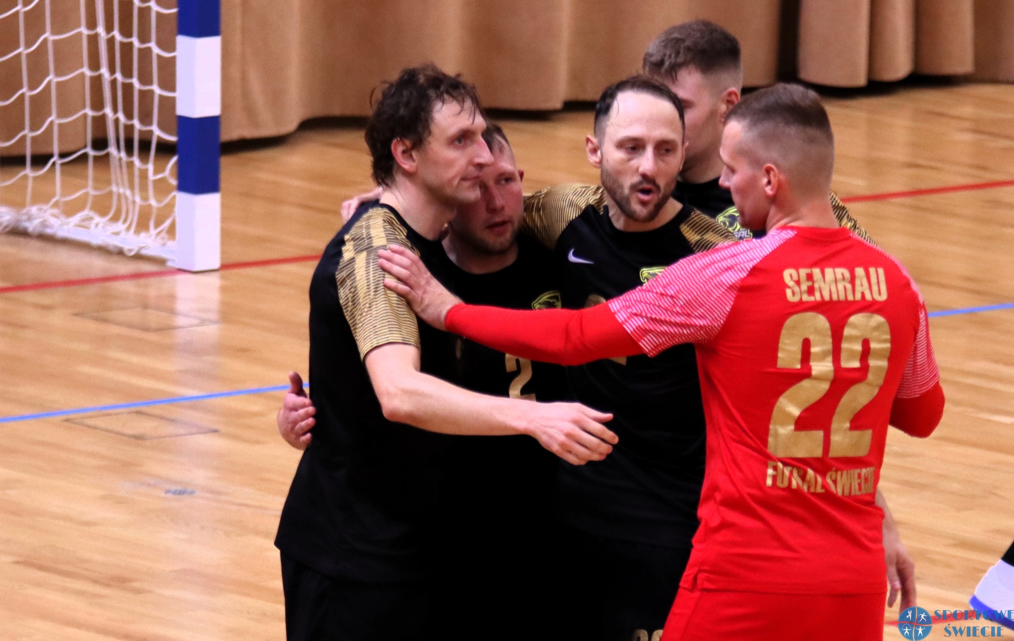 W 5. kolejce I ligi PLF (grupa północna) Grinbud KS Gniezno zremisował z Futsalem Świecie 3:3 (2:1). Spotkanie zaczęło się idealnie dla gospodarzy, którzy już w 1. min. wyszli na prowadzenie po strzale zza pola karnego Wojciecha Węgrzyna. Do remisu w 8. min. doprowadził Maksymilian Lewandowski, który skutecznie dobił piłkę po wcześniejszym uderzeniu z dystansu Karola Czyszka. Gnieźnianie momentalnie odzyskali prowadzenie za sprawą Marcina Marcinkowskiego. Wynik 2:1 utrzymywał się bardzo długo, mimo okazji bramkowych. Więcej ich stwarzali świecianie, ale dobrze w bramce rywali spisywał się Dawid Dymek. Gościom brakowało precyzji i szczęścia. W 17. min. Olaf Wójtowicz trafił w spojenie słupka z poprzeczką. W 28. min. mogło być 3:1, ale na szczęście dla naszej drużyny z bliska do pustej bramki nie trafił Marcinkowski. Potem miejscowi mieli rzut wolny pośredni z linii pola karnego, jednak Daniel Semrau obronił strzał Marcina Gresera. W 33. min. do remisu doprowadził w swoim stylu Olaf Wójtowicz. Pięć minut potem Mateusz Cyman dobrze znalazł się w polu karnym i z bliska wpakował futsalówkę do siatki dając pierwszy raz w tym meczu prowadzenie gościom. Gnieźnianie wycofali bramkarza i ten manewr im się powiódł, bo na 60 sekund przed końcem remis im uratował Marcin Marcinkowski.