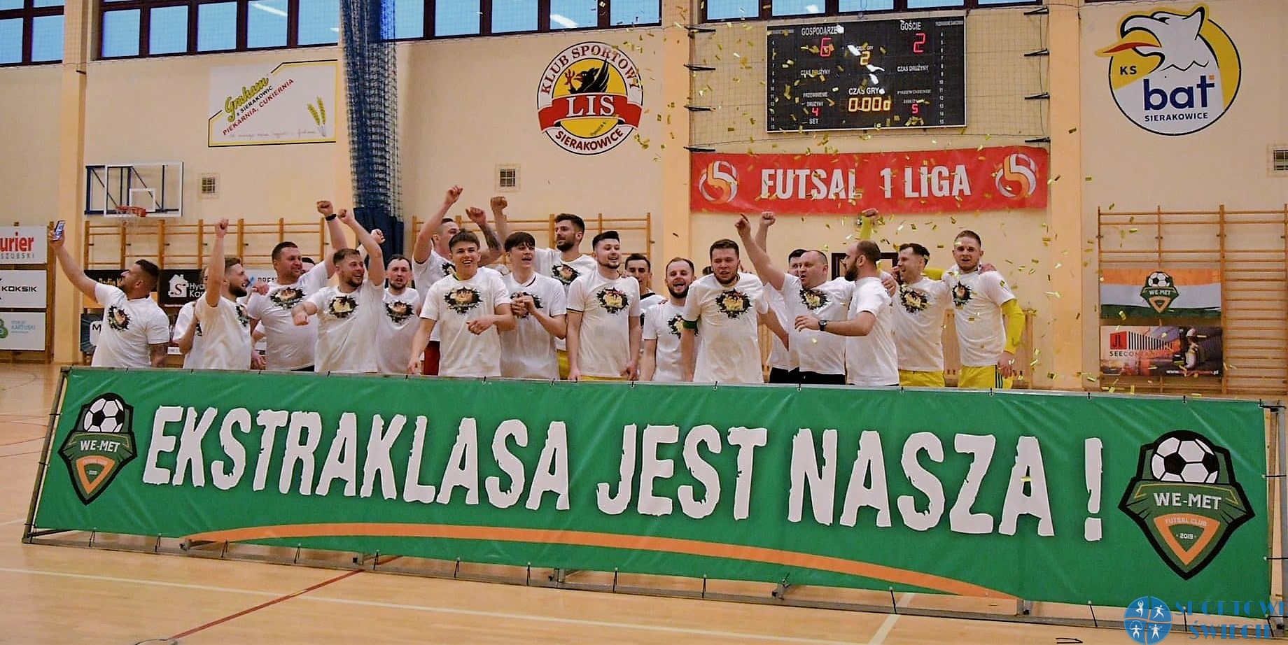 W 22. kolejce I ligi PLF We-Met Futsal Club Kamienica Królewska uzyskał historyczny awans do ekstraklasy. Wicelider w niedzielę pokonał u siebie Futbalo Białystok 6:2 (1:1). W 2. części piłkarze z Kamienicy Królewskiej wyszli na 3:1. Rywale zdobyli jeszcze kontaktowe trafienie, ale na więcej nie było ich stać. Potem piłkarze We-Metu z kibicami czekali na końcowy wynik ze Szczecina, gdzie grał lider. AZS UG Gdańsk tylko zremisował z Futsalem Szczecin 4:4 (1:3) i stracił na finiszu 1. miejsce, które zajmował od 11. kolejki. Gdańszczanie już po sześciu minutach przegrywali 0:3, a w 24. min. 2:4, jednak zdołali odrobić straty. Na strzelenie zwycięskiego gola mieli 12 minut, ale nie zdołali zadać decydującego ciosu. Teraz o powrót do elity będą musieli grać baraż z wicemistrzem grupy południowej. W niej też wszystko rozstrzygnęło się w niedzielę, ale lider nie zmienił się. Historyczny awans uzyskał Eurobus Przemyśl, a w barażu (6 i 13 maja) zagra Sośnica Gliwice. Po jego rozstrzygnięciu oraz zakończeniu rozgrywek FOGO Futsal Ekstraklasy dowiemy się kto spadnie z grupy północnej.