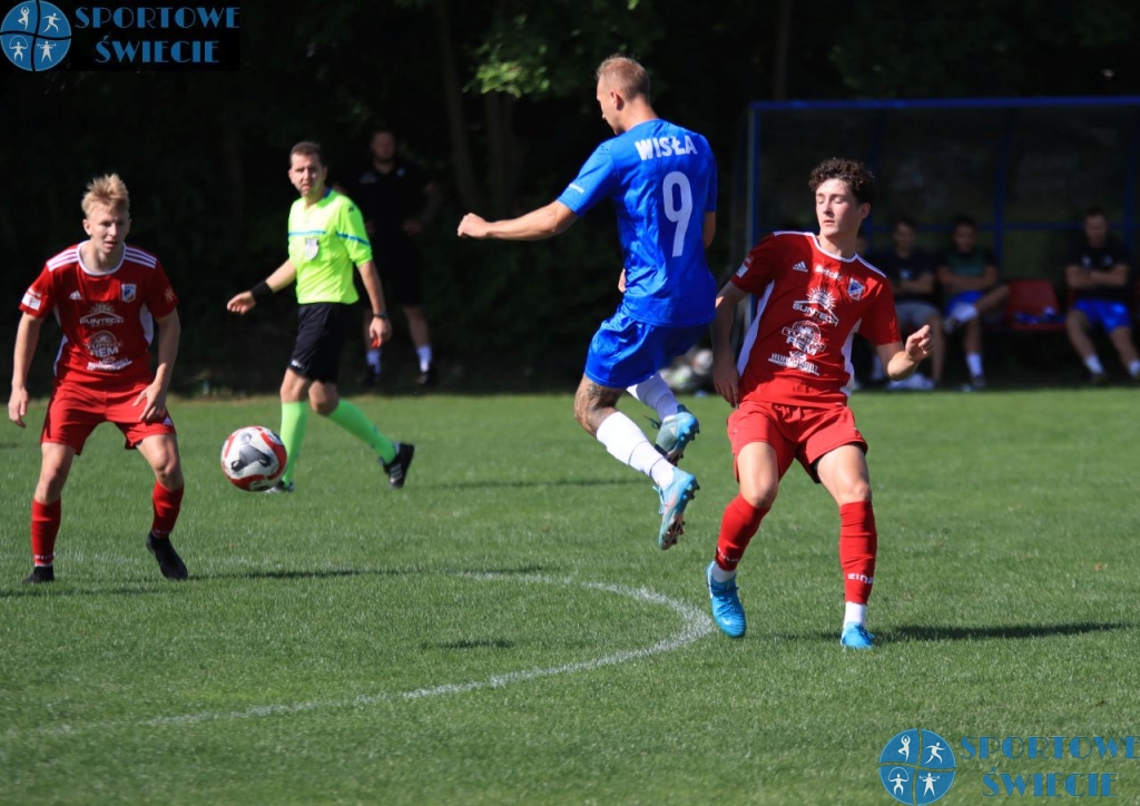W 3. kolejce A klasy Wda II Świecie przegrała z Wisłą Gruczno 1:4 (0:1). Gospodarzy wsparło czterech zawodników z szerokiej kadry trzecioligowca (Marcin Droż, Maksymilian Madej, Bartosz Kotras, Mikołaj Januszewski). W bramce rezerw zadebiutował pozyskany w zeszłym tygodniu z Olimpii Grudziądz Szymon Lewandowski, który wiosną był wypożyczony do Startu/Eco-Pol Pruszcz. W 1. części więcej z gry mieli goście. Dwa groźne strzały minimalnie obok słupka oddał Patryk Kotala. Centrostrzał Łukasza Czubkowskiego zatrzymał się na poprzeczce. Z dystansu próbował także Krzysztof Szawarniak, ale zabrakło precyzji. Sytuację bramkową miał też Tomasz Widomski. W 23. min. po strzale Kotali Szymon Lewandowski odbił piłkę do boku, ale pierwszy dopadł do niej Mateusz Korecki, który wślizgiem wepchnął ją do bramki. Potem dwie szanse miał Mateusz Rumiński, ale najpierw przestrzelił z bliska, a w 45. min. „podał” piłkę bramkarzowi. Świecianie w tej części próbowali zagrażać bramce Dominika Ostrowskiego po stałych fragmentach gry oraz akcjami skrzydłami, lecz tylko w 30. min. mocniej zabiły serca kibicom z Gruczna, gdy nad poprzeczką główkował Mikołaj Januszewski. W przerwie trener rezerw Wdy Maciej Megger wprowadził Kacpra Groszewskiego, który już w 47. min. doprowadził do remisu. Spotkanie zrobiło się otwarte, z sytuacjami z obu stron, jednak to Wiślacy mieli więcej atutów w ofensywie. Dobre zmiany dali rezerwowi. Kluczowy moment był między 63. a 65. min., gdy grucznianie strzelili dwa gole. Najpierw trafił bardzo aktywny w niedzielę Patryk Kotala (po zagraniu Bartosza Dąbrowskiego), a 120 sekund potem Kamil Komada, któremu asystował Krzysztof Szawarniak. W 72. min. kropkę nad „i” postawił wychowanek Wdy Norbert Frankiewicz ładnym uderzeniem z 16 metrów. Wynik już się nie zmienił. Dla Wisły to trzecia wygrana w sezonie, a druga wyjazdowa.