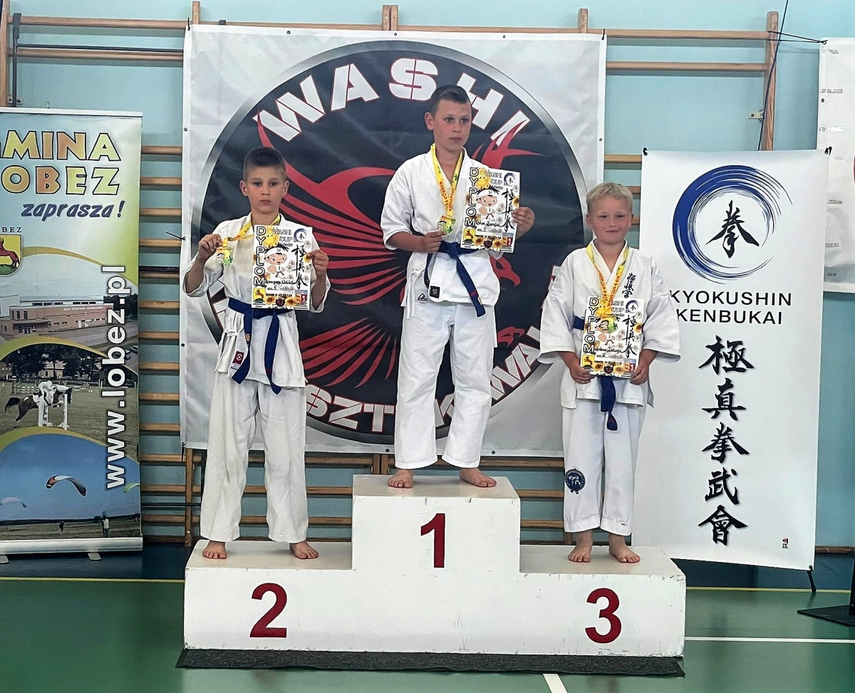 W sobotę w miejscowości Łobez (woj. zachodniopomorskie) odbył się czwarty, a zarazem ostatni turniej z cyklu WASHI CUP II – Lato. Jego organizatorem był Klub Sztuk i Sportów Walki WASHI. - Zawody podzielone były na kilka konkurencji: grapling dzieci, kata, kumite oraz Shinken Shobu – informuje sensei Jakub Kunkel ze Szkoły Kyokushin Karate w Świeciu, który w Łobzie był sędzią. - W turnieju wzięło udział ponad 120 zawodników, w tym siedem z naszego klubu. Opiekunem drużyny był senpai Adam Poćwiardowski.